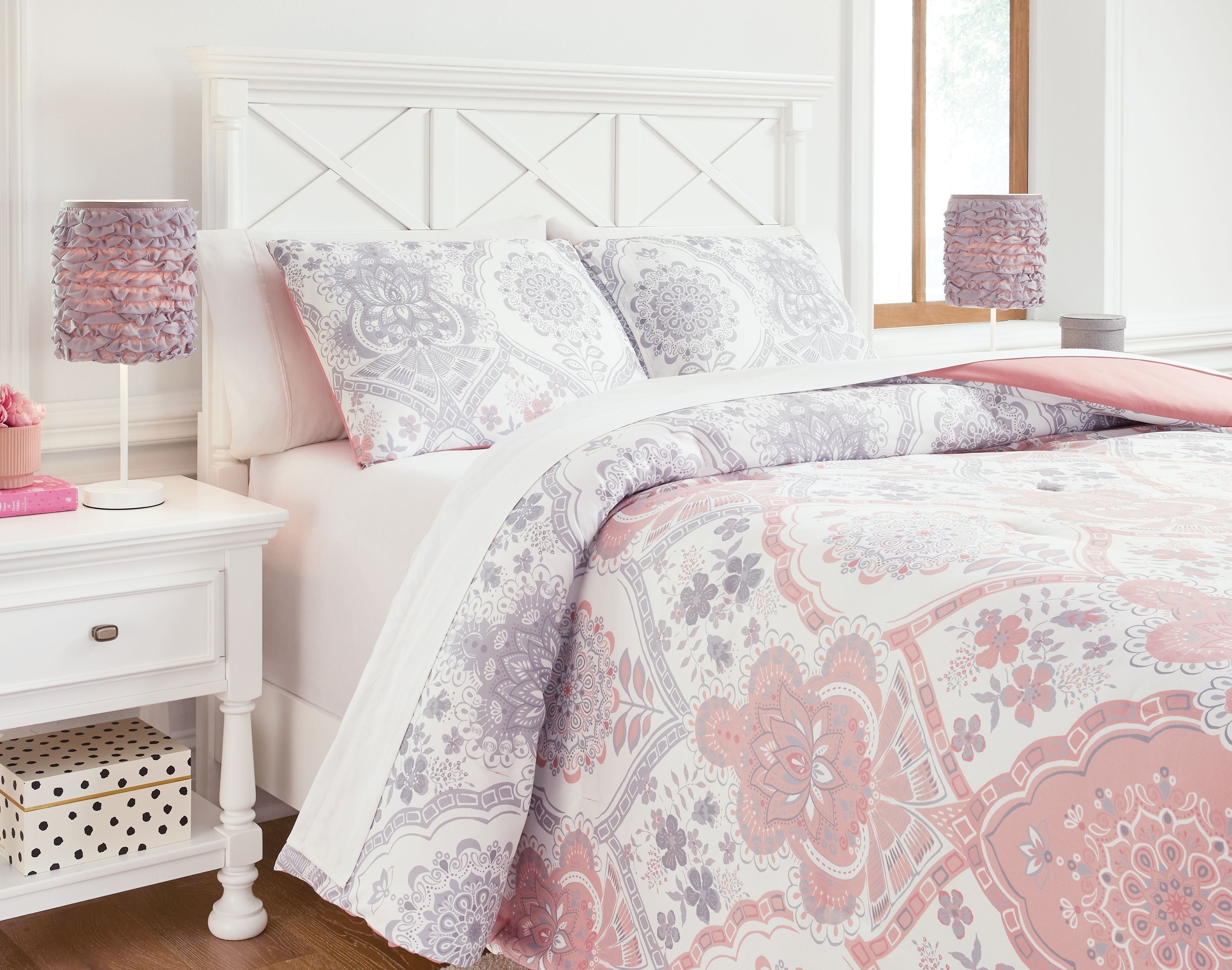 Home All Avaleigh - Pink/white/gray - Full Comforter Set