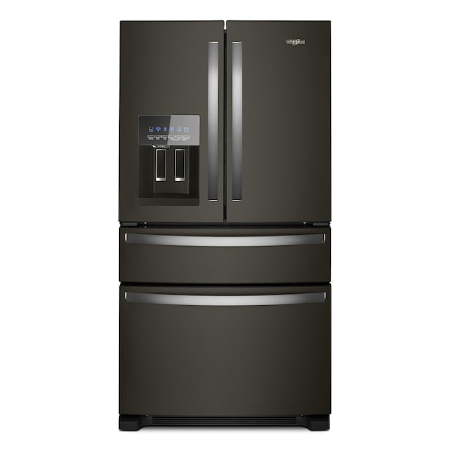Whirlpool 36" 24.5 CuFt 4-Door French Door Refrigerator w/5 Glass Shelves, External Ice/Water Dispenser, Icemaker in Fingerprint Resistant Black SS