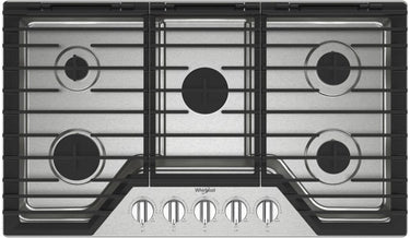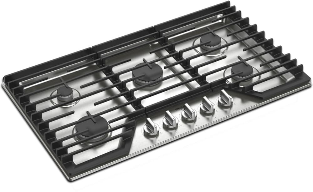 Whirlpool 36-inch Gas Cooktop with EZ-2-Lift Hinged Cast-Iron Grates - Stainless Steel-Washburn's Home Furnishings