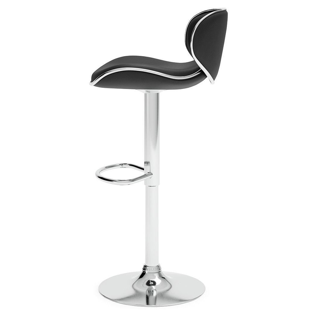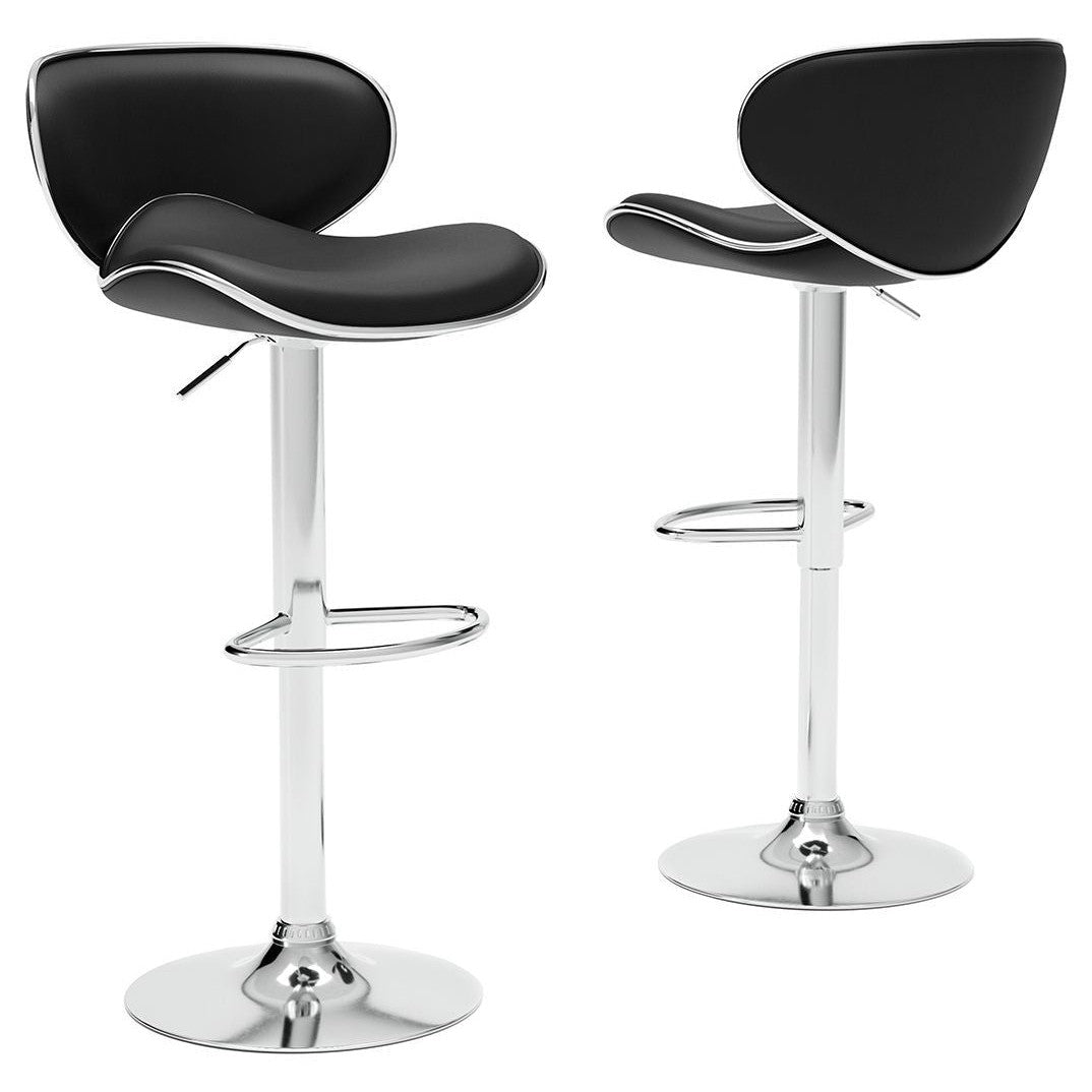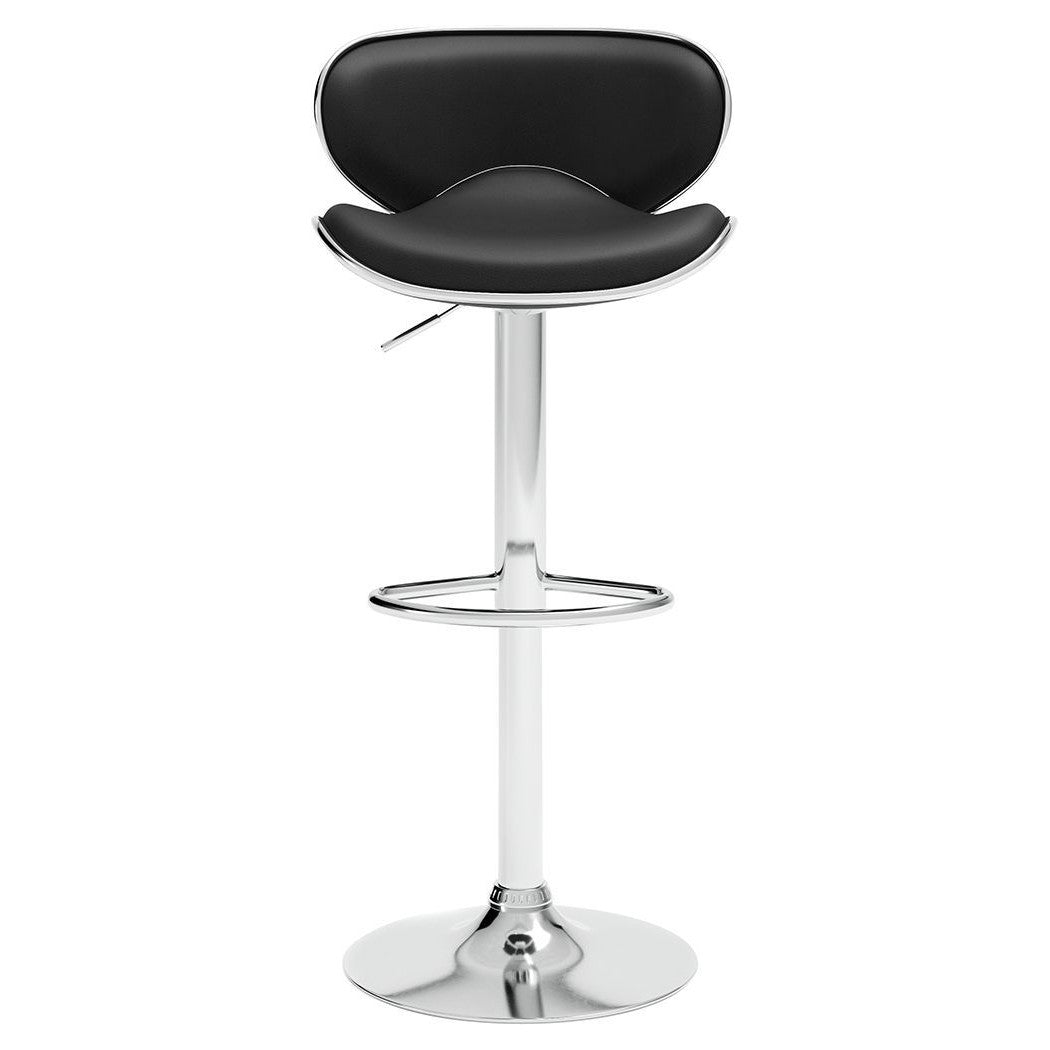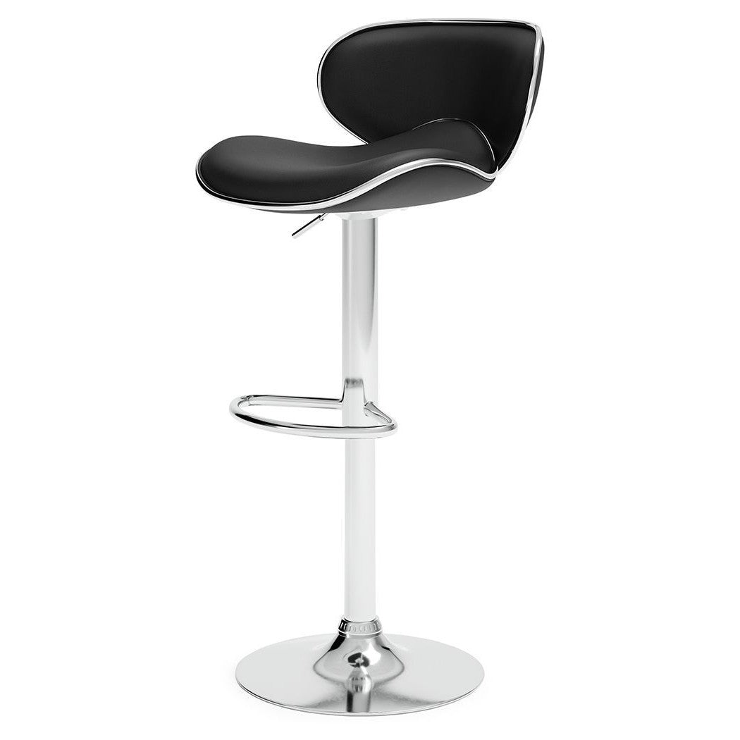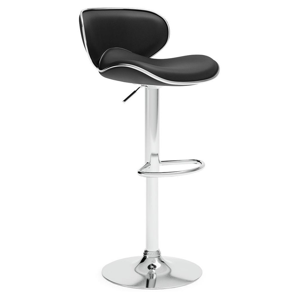 Have a taste for highly contemporary style? You're sure to find this posh and polished bar stool something to savor. Crafted with a sturdy steel frame beautified with a brilliant chrome-tone finish, this designer bar stool caters to your comfort with an adjustable height feature and swivel pedestal base. The cushioned seat and backrest are covered in a feel-good black faux leather upholstery for sleek, modern appeal.