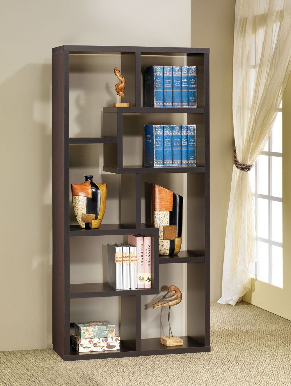 Stately, sturdy, and strong, this bookcase is an excellent choice for a library or living room. featuring eight convenient shelves, it offers lots of space for storage. the shelves are arranged in a bold, geometric design, giving it a modern appearance. it's available in six stunning colors to accentuate any decor. constructed from high-quality materials, this bookcase is a safe spot to store your most precious belongings.