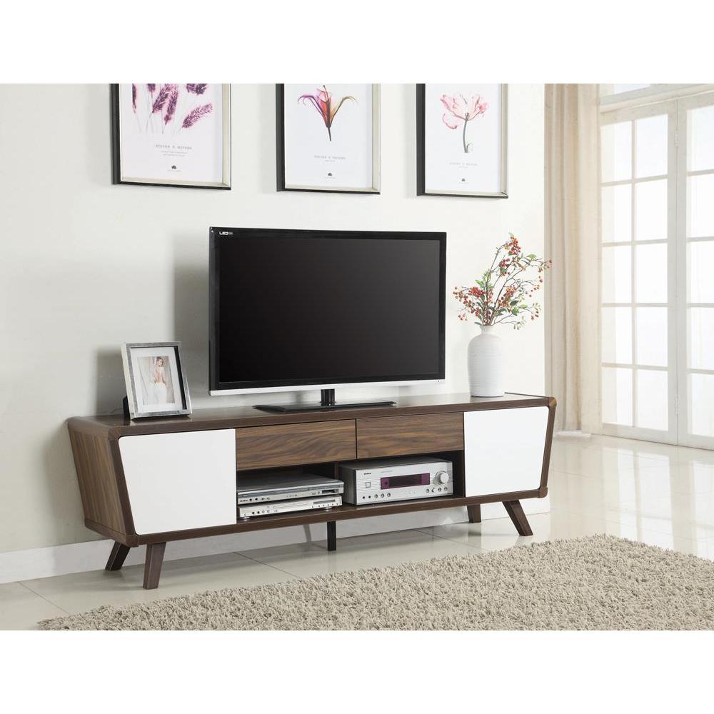 Tv console, dark walnut/glossy white, 74.00 x 15.50 x 21.50"h.