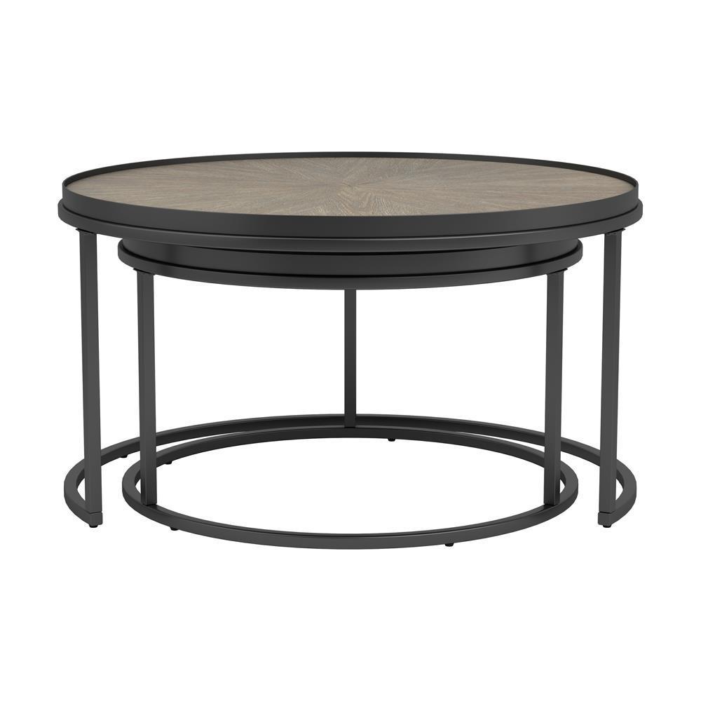 These nesting tables could be the perfect addition to your rustic space. weathered elm tabletops bring out a simple look that evokes relaxation. a black finish dresses up the metal frame. the metal elements contribute an industrial feel. tables can be used in modern and industrial spaces.