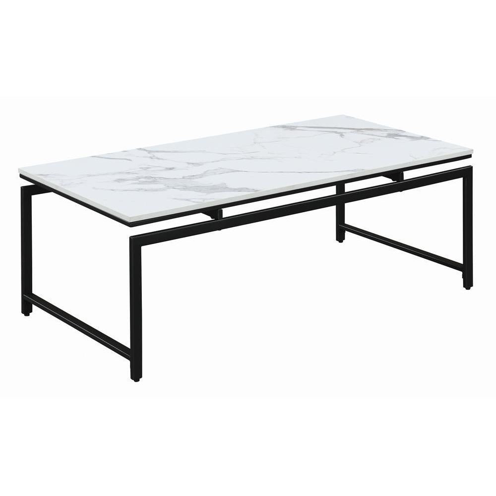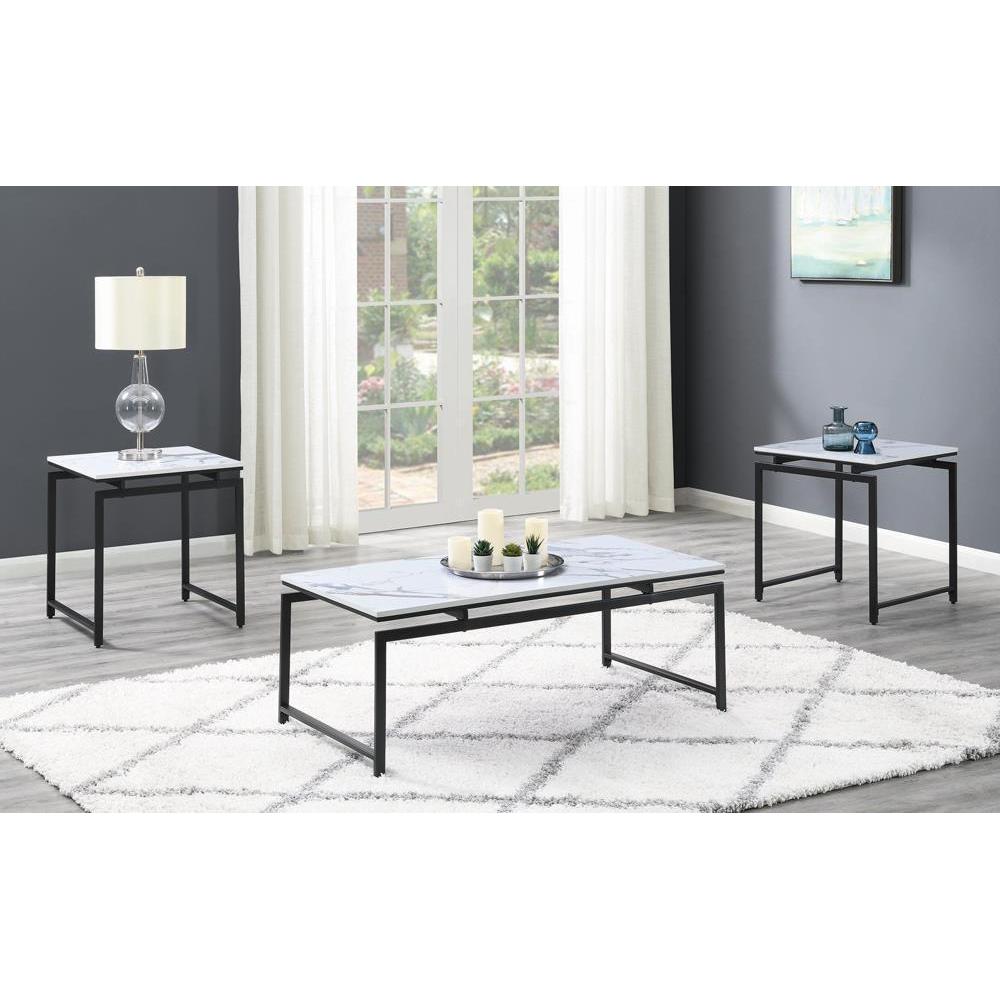 Marble is a stunning and coveted material for the home, but can be demanding in its upkeep. this three-piece occasional set of tables solves your maintenance worries with its realistic easy-care surface, while you benefit from the realistic look of this natural material. dark gunmetal legs provide a gorgeous foil for the creamy faux marble table tops. the three occasional tables work handily together or in separate rooms in your home. their size and appearance lend themselves to a stylish presence in a living room, dining room, guest room or even an upscale bed or bath.