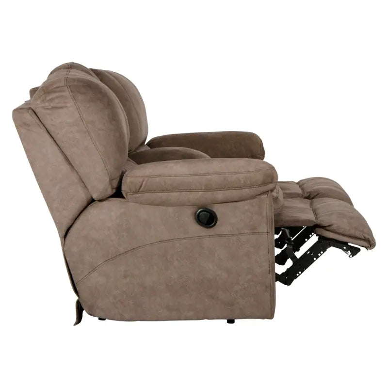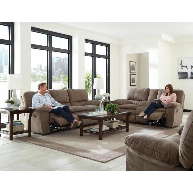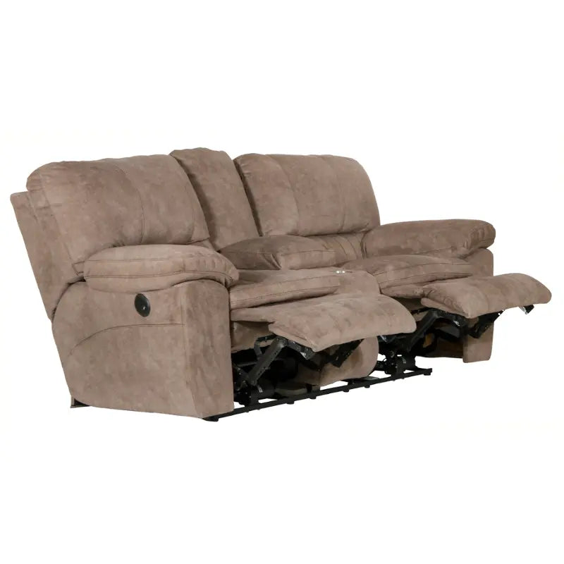 You will love the transitional design and comfortable seating offered by the Reyes Power Reclining Loveseat from Catnapper. It features pub-style back pillows with a unique channel-back lumbar treatment, box-bordered pillow top seat cushions, pillow arms and padded footrest. It also has a center storage console and two convenient cup holders. It comes in a luxuriously soft printed suede fabric. It has a lay-flat reclining comfort. It can be paired with the matching reclining sofa and recliner.