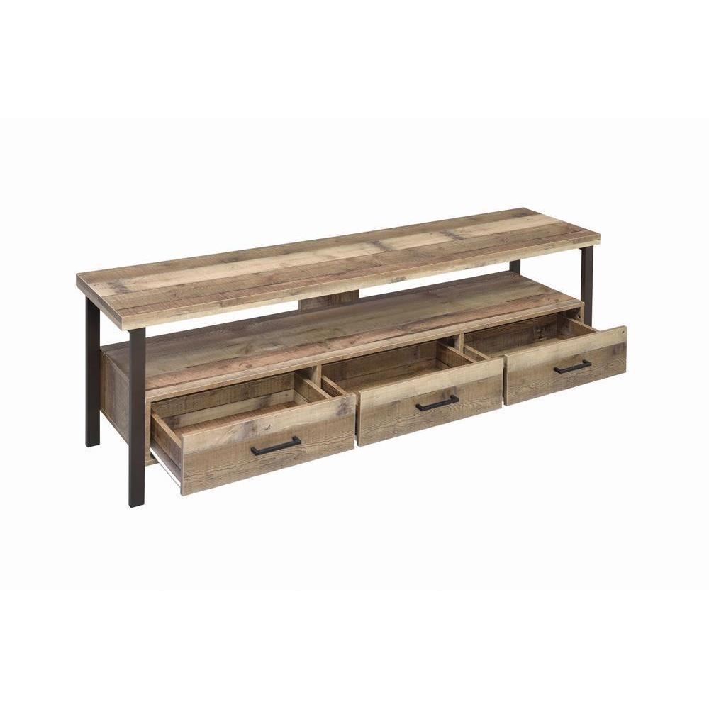 71" tv console, wthrd pine, 70.75 x 15.50 x 23.50"h.