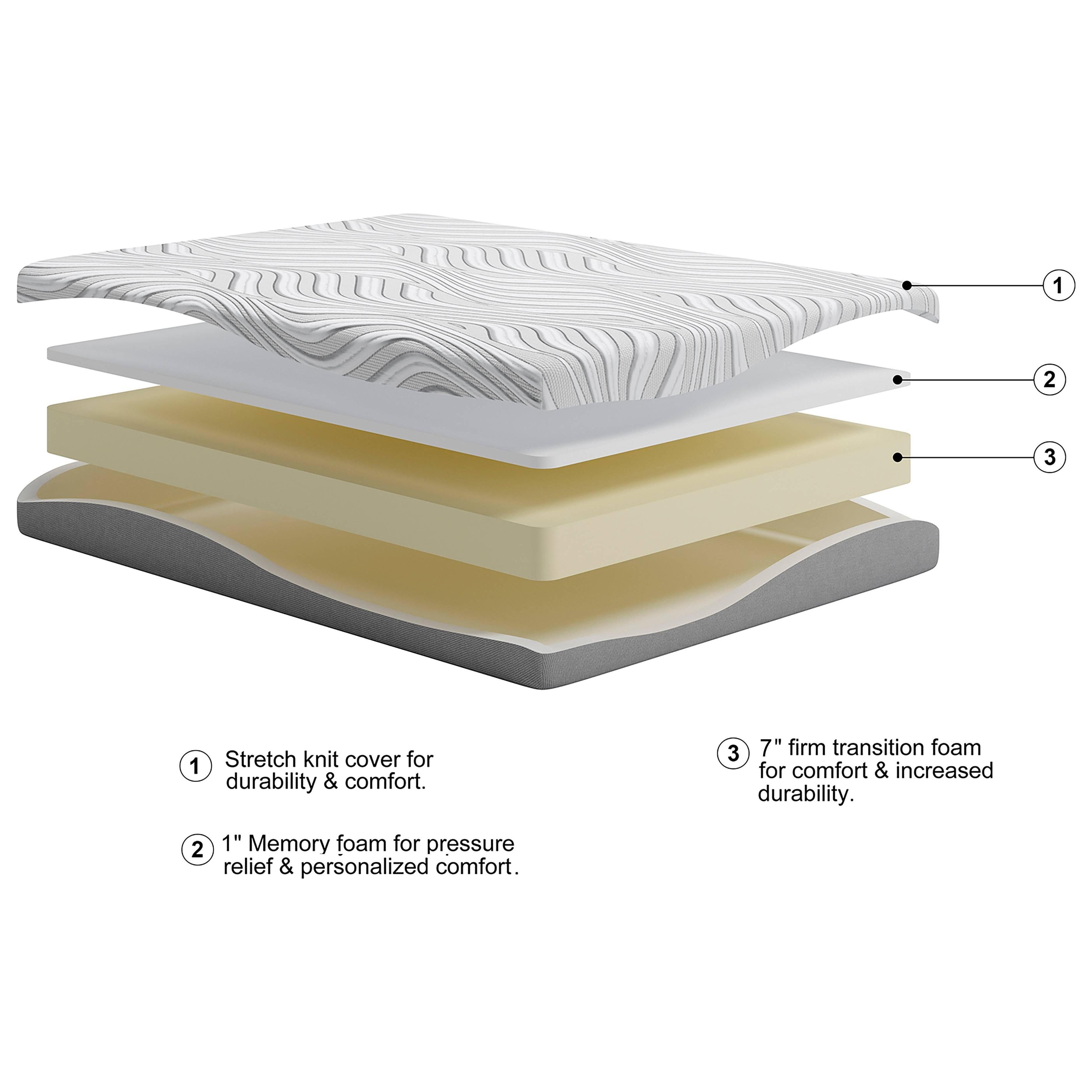 When it comes to your comfort, discover this 8-inch mattress. Its thick layer of memory foam conforms to your body, delivering amazing support, pressure relief and comfort. The memory foam layer is paired with a super-thick layer of firm support foam, which helps reduce motion transfer so you and your partner can enjoy an undisturbed sleep. This mattress arrives in a box for easy setup. Foundation/box spring available, sold separately.