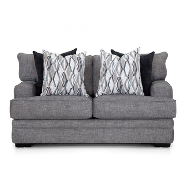 Timeless style meets unmatched comfort in the 953 Juno Loveseat — a generously sized piece designed to elevate any living space. Upholstered in a versatile dark gray fabric and accented with coordinating throw pillows, this loveseat blends classic elegance with modern durability.