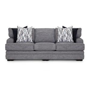 Generously scaled for maximum relaxation, the Juno Sofa is designed to be the standout piece in any living space. Upholstered in a rich dark gray fabric, it offers a versatile, modern look accented by coordinating throw pillows for added texture and depth.