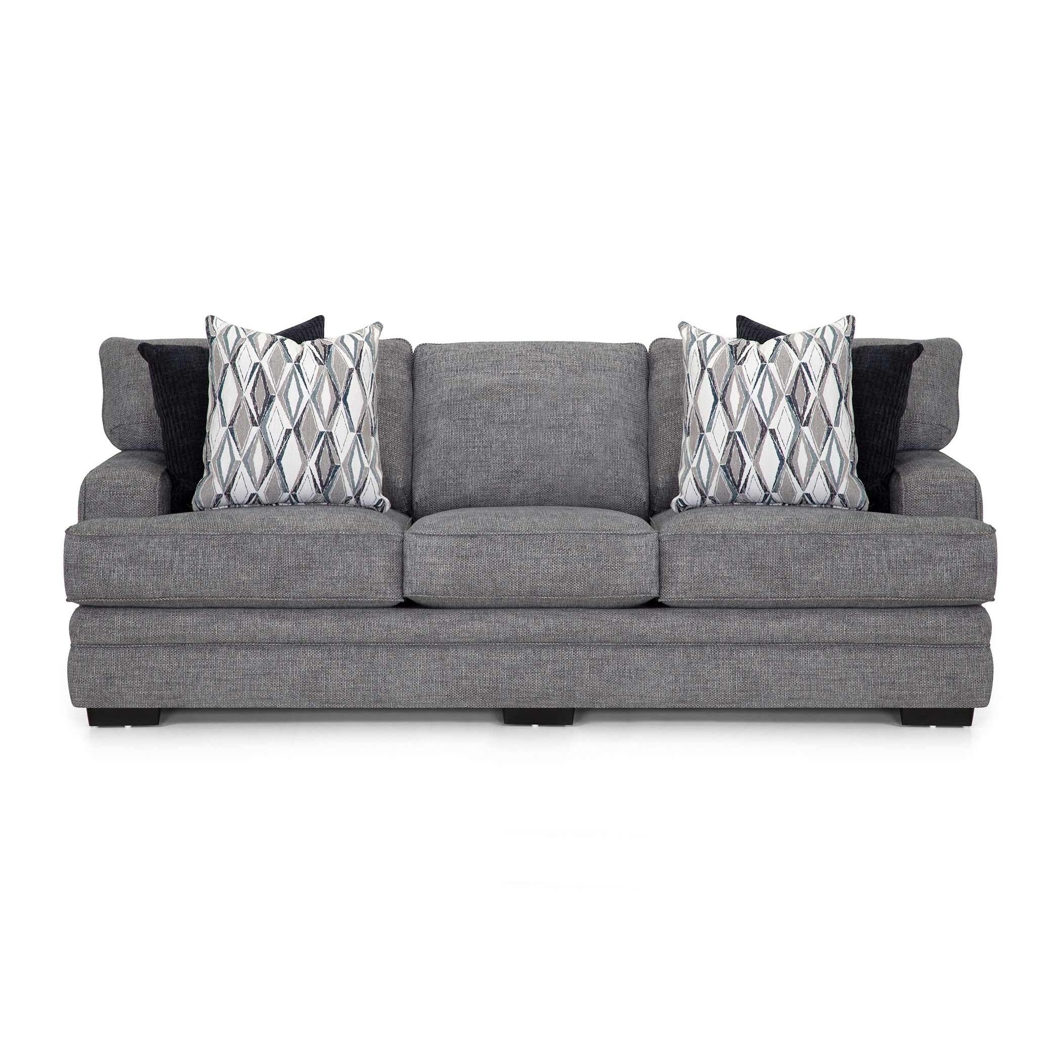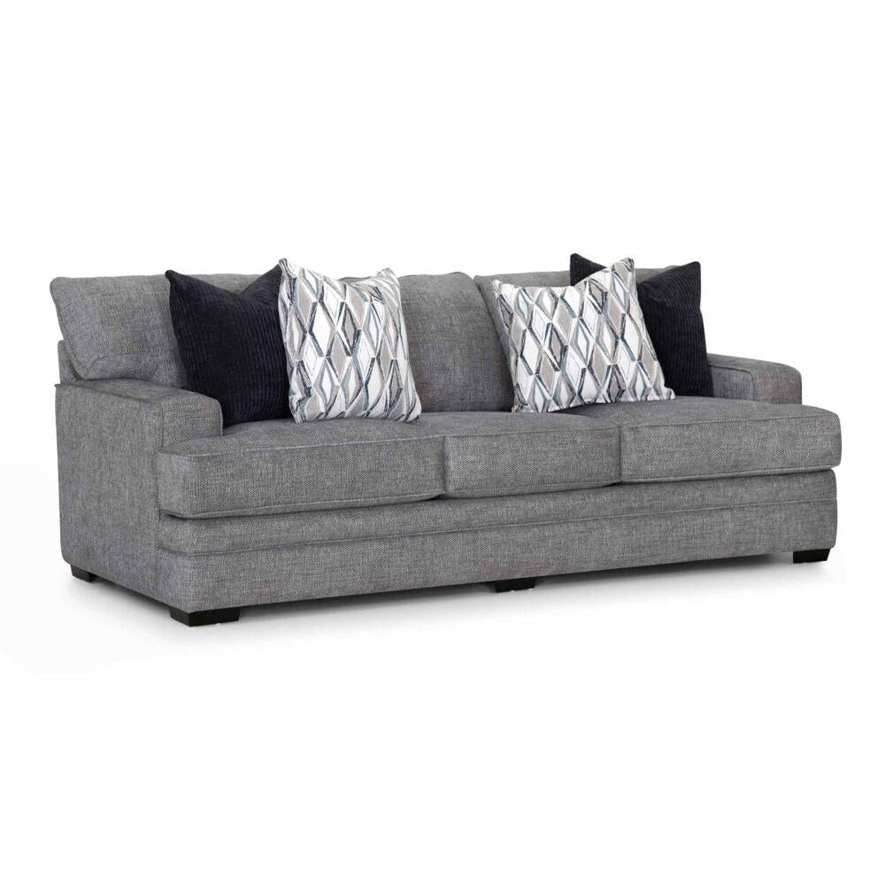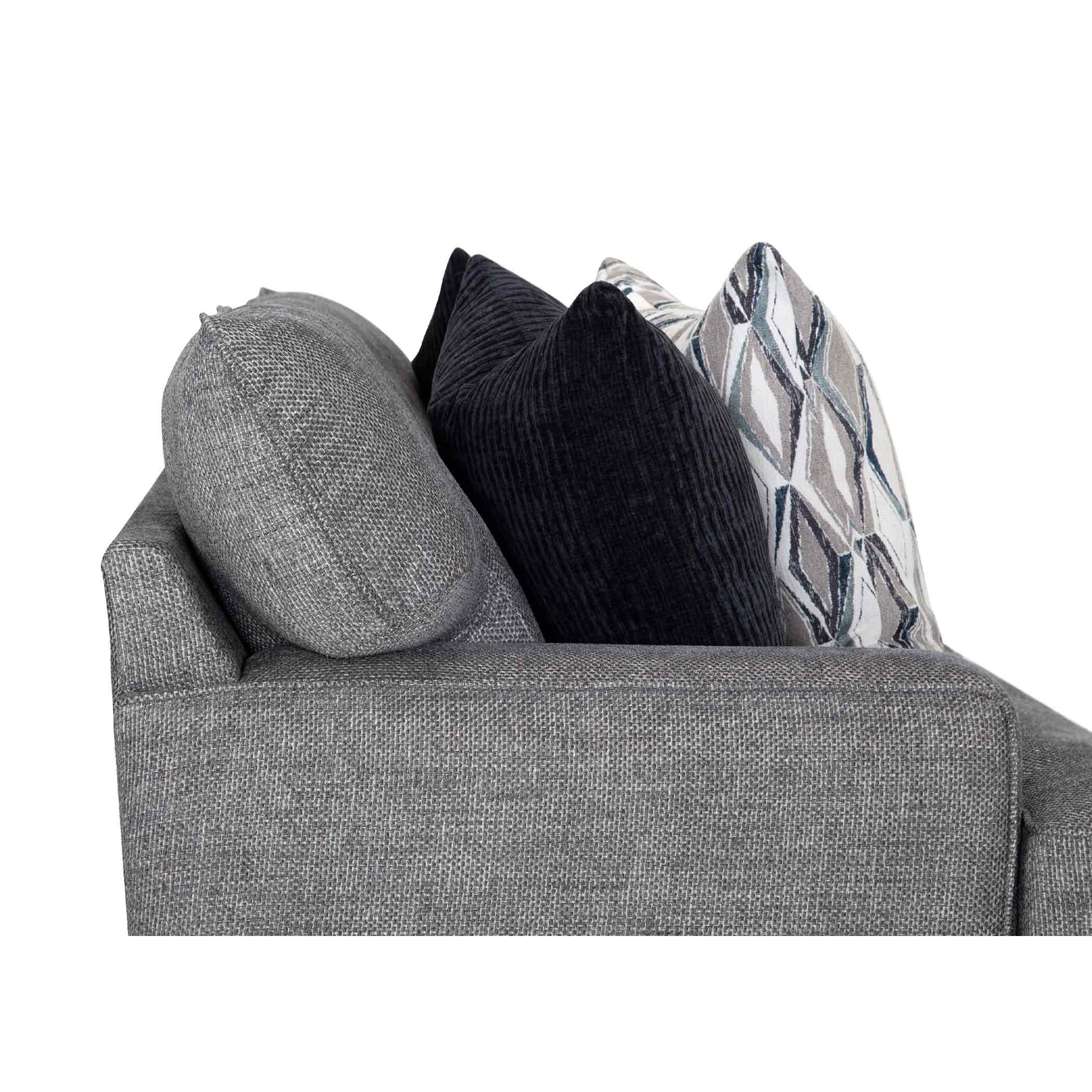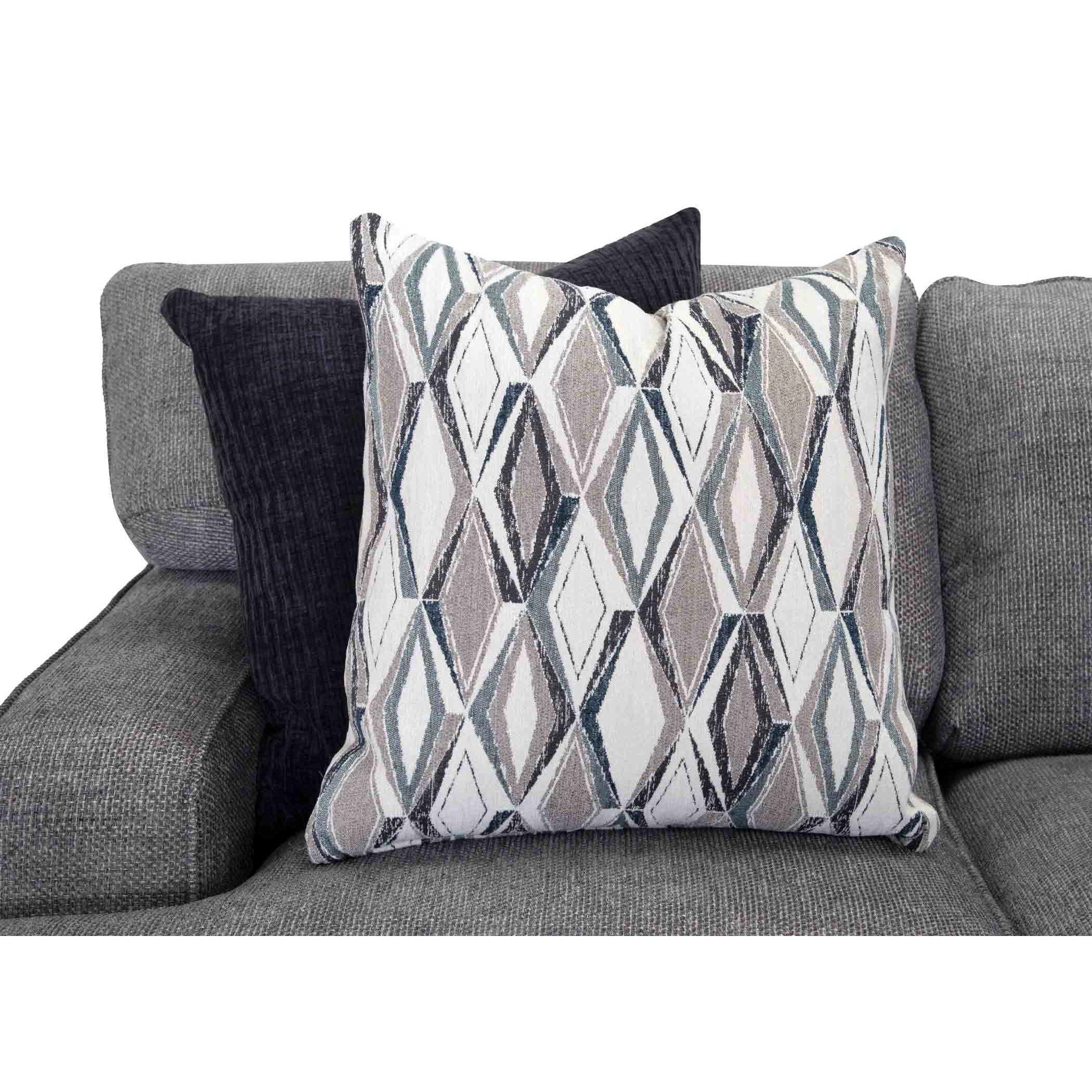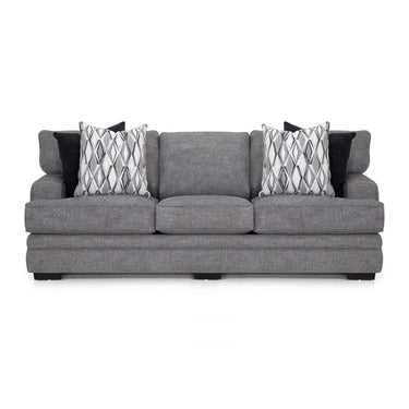 Generously scaled for maximum relaxation, the Juno Sofa is designed to be the standout piece in any living space. Upholstered in a rich dark gray fabric, it offers a versatile, modern look accented by coordinating throw pillows for added texture and depth.