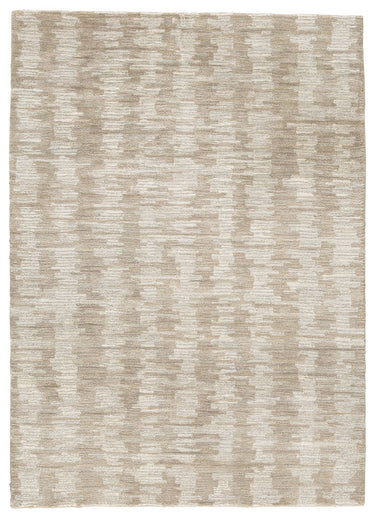 The hand-tufted modern design of this area rug will make a bold statement in any room. By alternating the pattern flow, the weavers have created a work of art alive with texture. Shades of cream and brown are blended to produce an abstract-yet-tranquil feel underfoot.