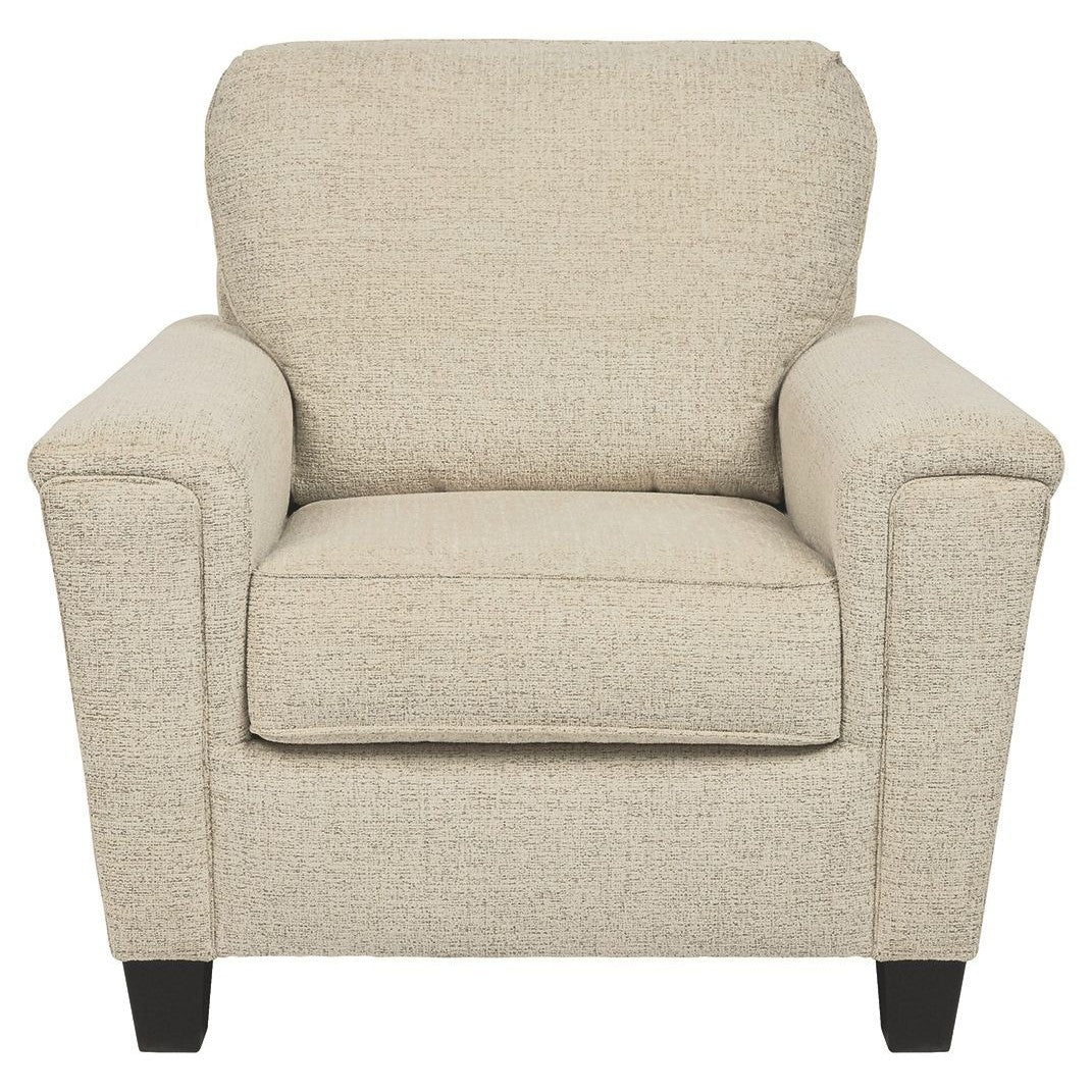 If you're looking to lighten the mood, you're sure to find this space-conscious, budget-conscious chair a breath of fresh air. Covered in a cream-tone chenille upholstery loaded with plush texture, this less-is-more contemporary chair is dressed to impress with angled side profiling and track armrests wrapped with a layer of pillowy softness for that little something extra. Talk about one sensational look.