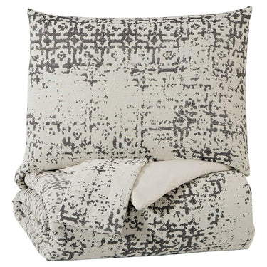Less is indeed more. This three-piece comforter set is a dream come true if you're looking for subtle sophistication. Beautifully tasteful, its yarn-dyed, jacquard woven distressed geometric design is richly enhanced by natural hues of charcoal and bone that are wonderfully understated.