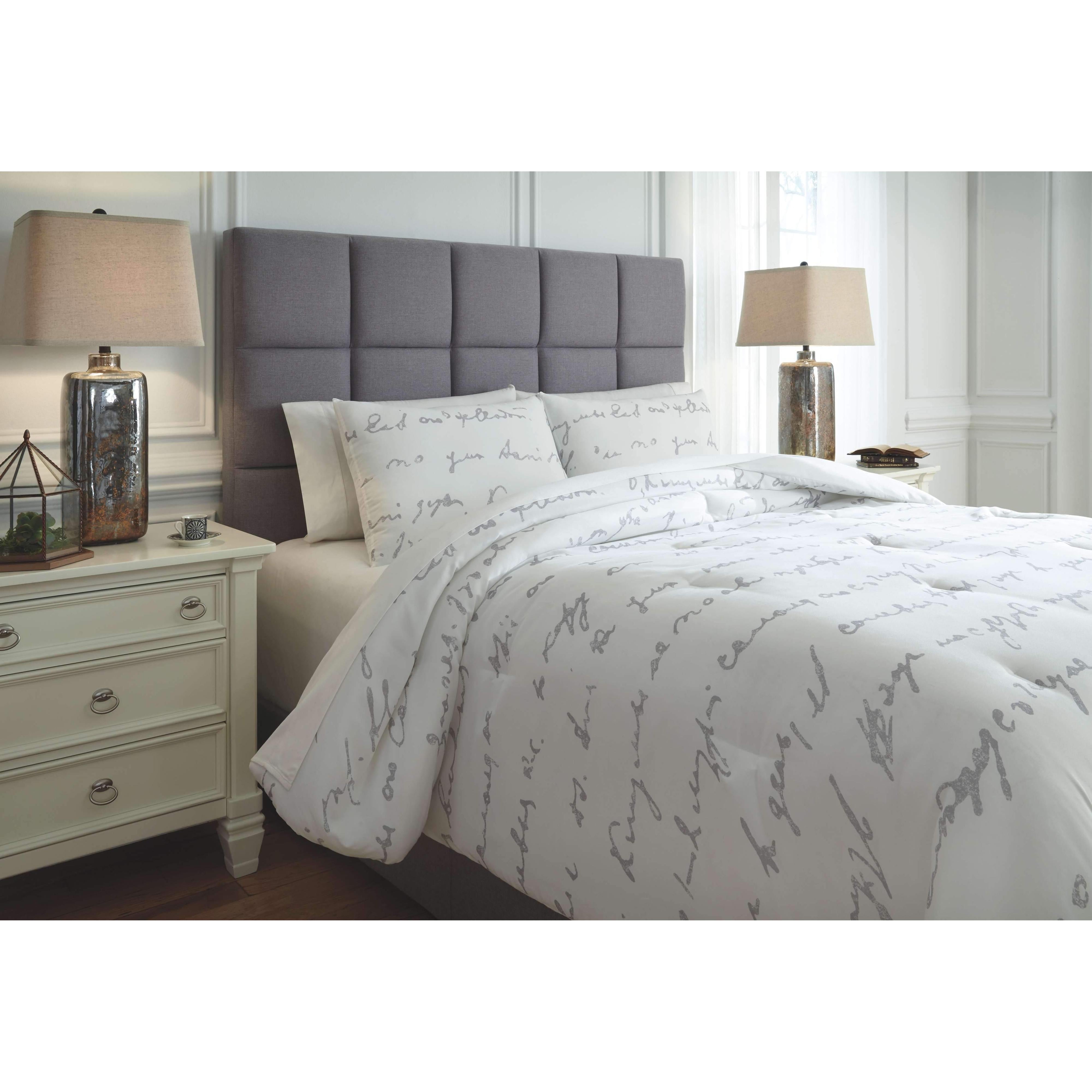 Express your love for words with the unique script design of this comforter. Featuring white and gray undertones, this neutral and contemporary bedding will add a special touch to any room.