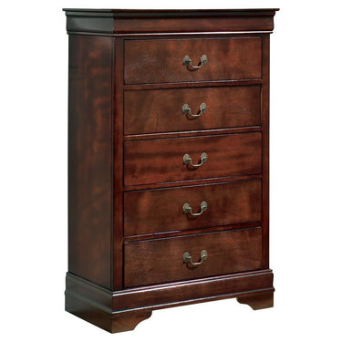 This chest of drawers is the epitome of traditional decor. Louis Philippe-style moulding dates back to the mid-19th century when furnishings were lavish yet somewhat simple. Deep finish brings warmth and elegance into the space.