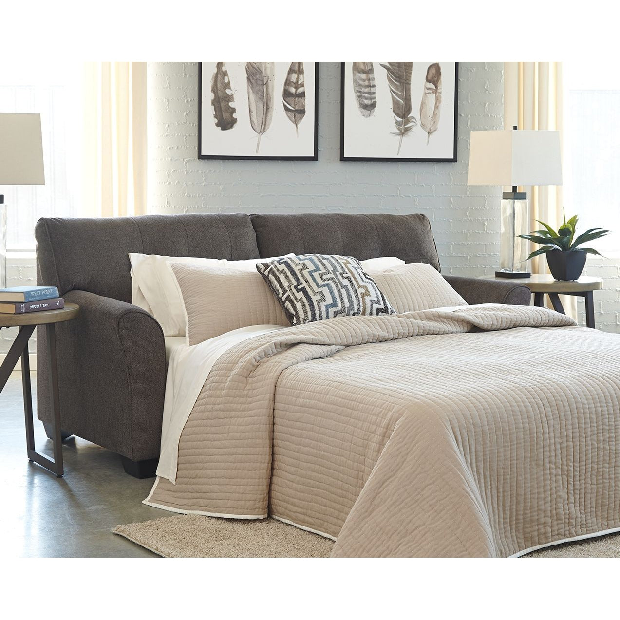 This sumptuous full sofa sleeper invites you to kick back in style. Ultra thick cushions are wrapped in a plush earth-tone upholstery sure to blend beautifully with your decor. Chic tufting and wedge armrests bring that touch of flair that sets this sofa sleeper apart. Easy pull-out mattress in quality memory foam accommodates overnight guests.