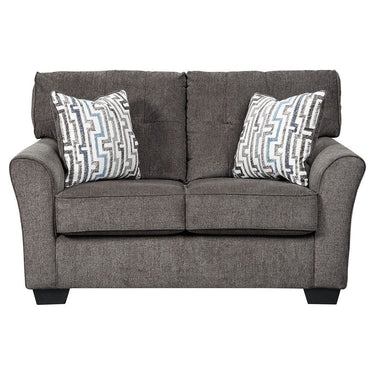 This sumptuous loveseat invites you to kick back in style. Ultra thick cushions are wrapped in a plush earth-tone upholstery sure to blend beautifully with your decor. Chic tufting and wedge armrests bring that touch of flair that sets this loveseat apart.