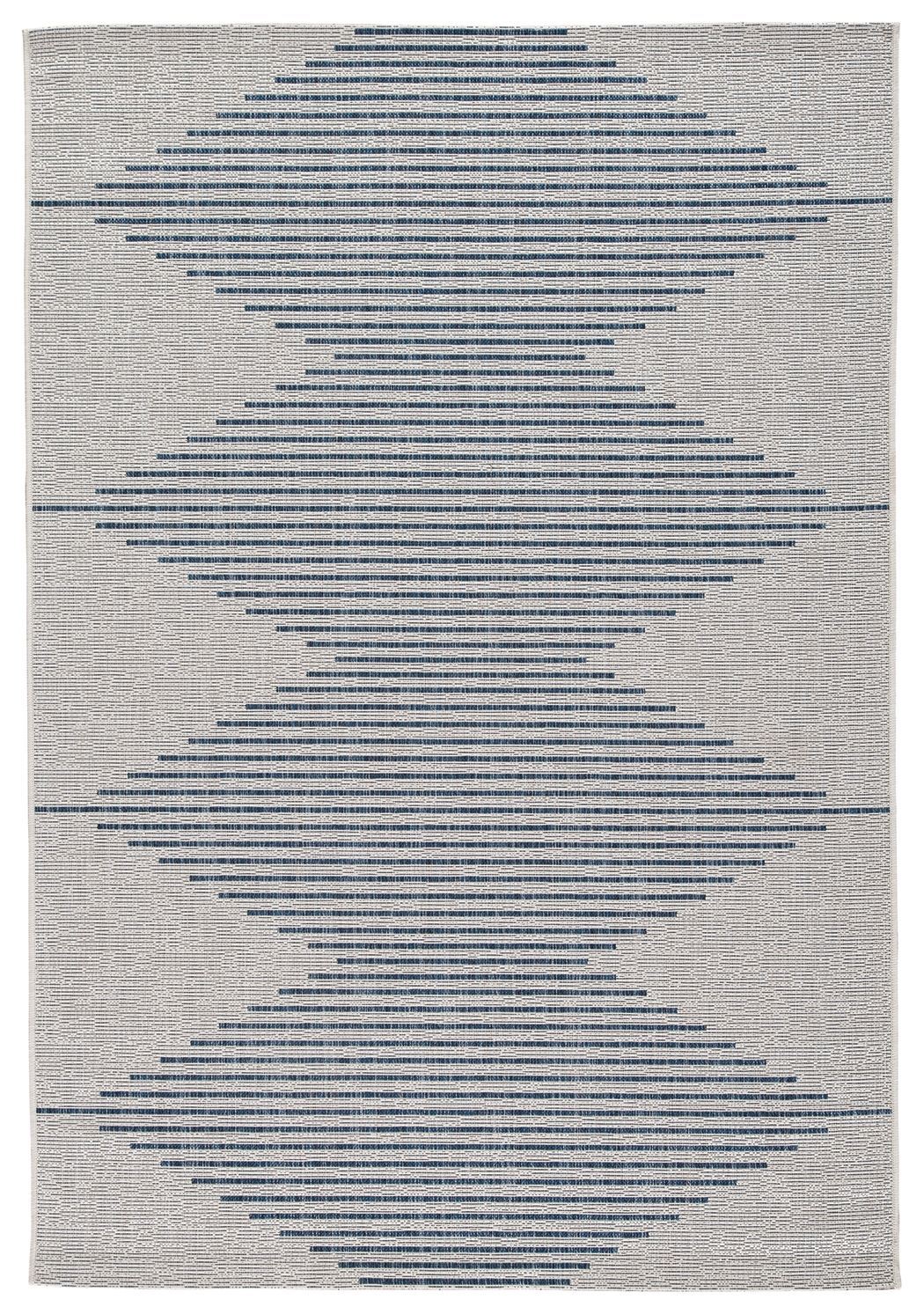 Delineate a space in a beautiful way with this designer area rug. Its gorgeous geometric design, in white and shades of blue, infuses a modern sensibility that simply suits your style.