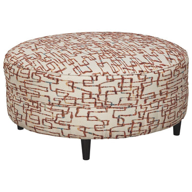 Wrapped in an aptly named "fiesta"fabric that's cause for celebration, this oversized accent ottoman makes a bold, beautiful statement. With hints of coral, turquoise and gold, the ottoman's distinctive cut-fringe embroidery infuses great texture. Rest assured, this firmly cushioned round ottoman is loaded with exceptional comfort and cool, contemporary flair.