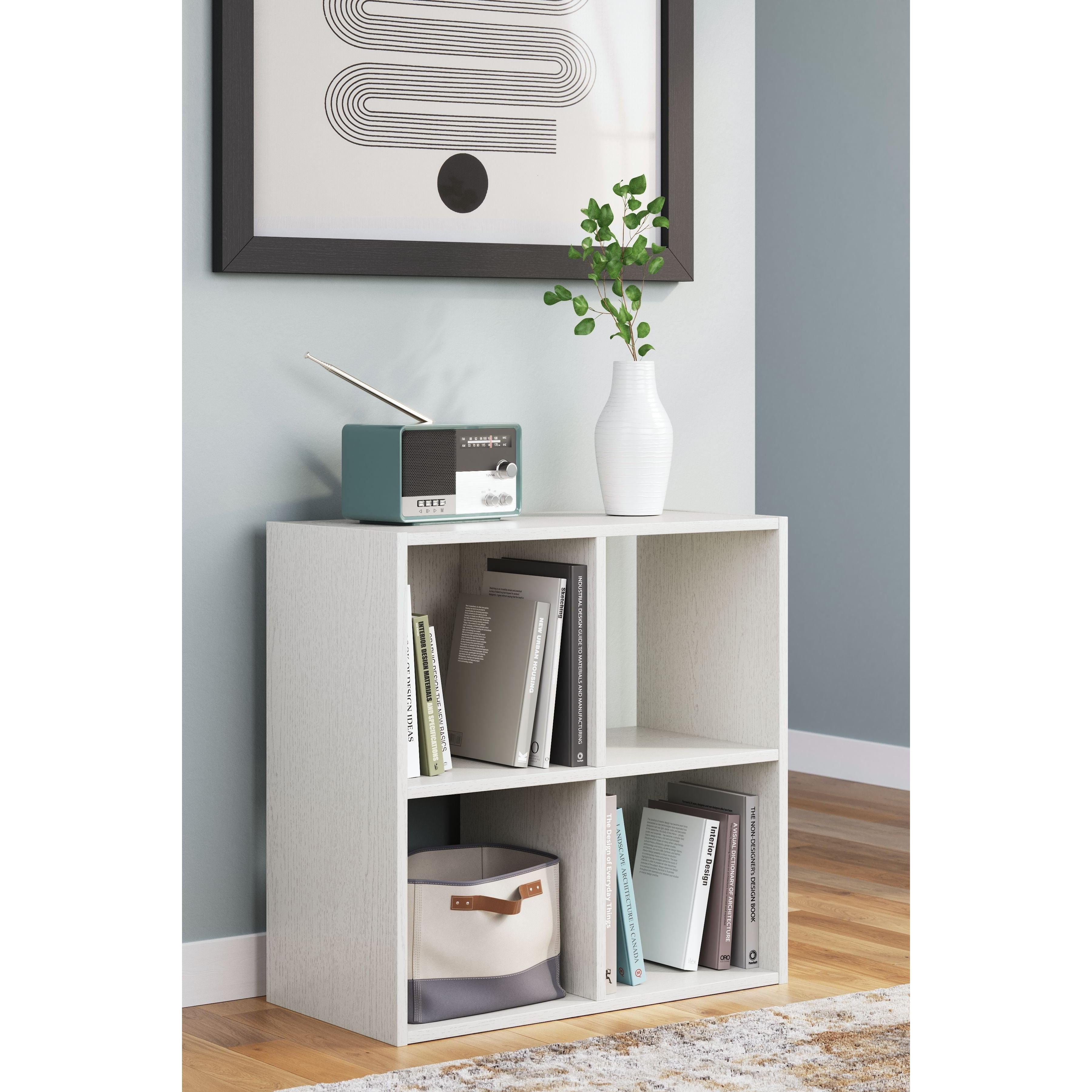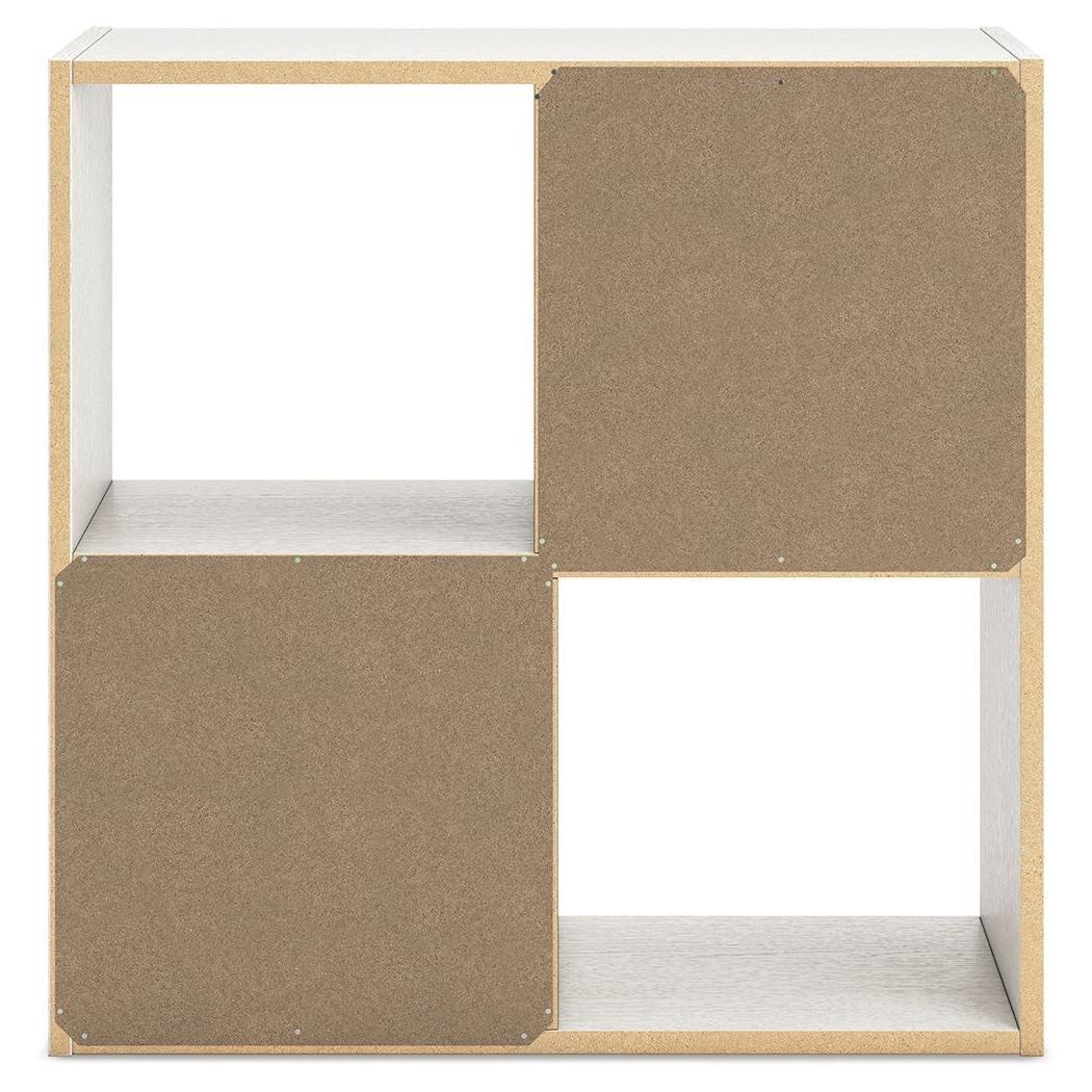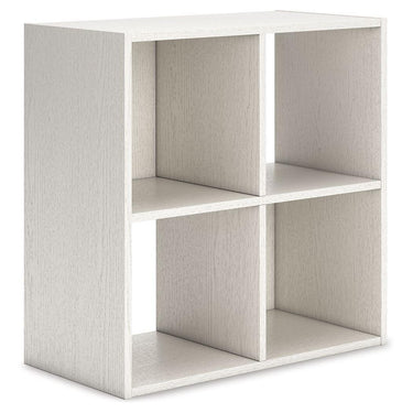 Dare to take minimalism to the max. This four-cube organizer has an air of sleek simplicity thanks to its white painted finish with subtle replicated wood grain. And with the ability to keep your space clutter-free with its storage cubbies, there's no doubt about it: This contemporary piece is sure to become a classic.