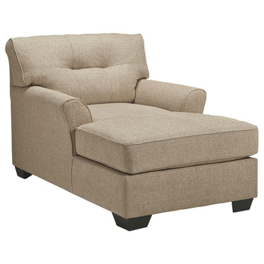 Stretch out in style with this richly upholstered chaise. Tailored touches including flared armrests and tufted back cushioning infuse an upscale sensibility. Textural tan chenille fabric is loaded with neutral sophistication. What a brilliant way to bring everyday luxury to your living room, family space or bedroom retreat.