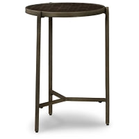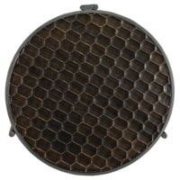Play up your contemporary cool character with this chairside end table. The scooped honeycomb design on the top recalls retro motifs for a modern era, with a distressed brown finish enhancing the pattern. A round tubular base with a gray glaze rounds out the look. This table glows with a refined kind of radiance.