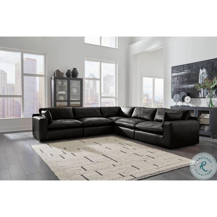 Ashley Emilia 5 Piece Sectional w/Left & Right Corner Chairs, 2 Armless Chairs & Wedge w/Ottoman in Black