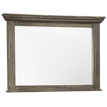 - Mansion style panel bed with matching panel details and large fluted posts.