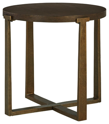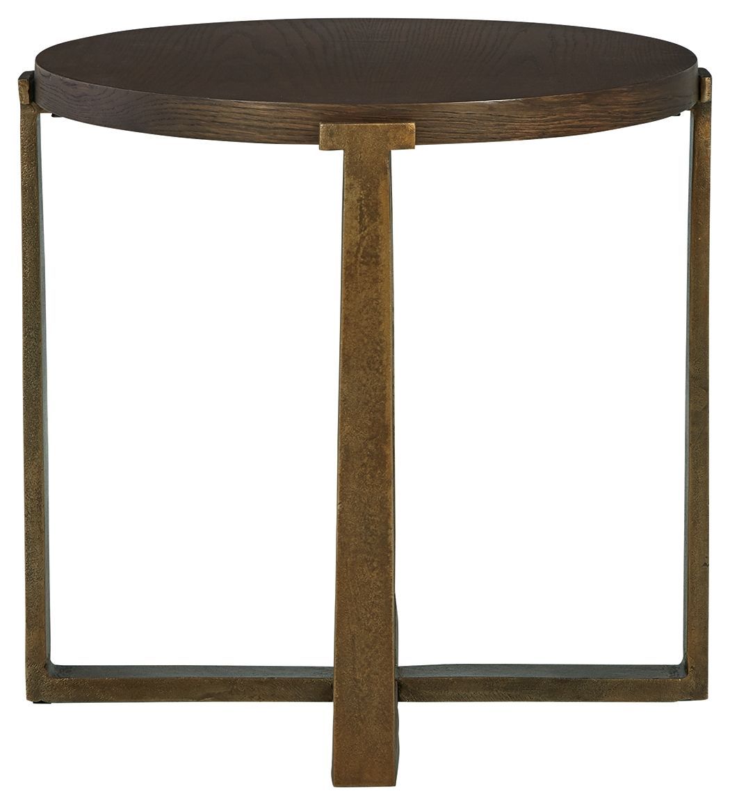 Chic and sleek, this end table satisfies your taste for contemporary design. Its warm brown top is neutral and refined, while an antiqued goldtone base adds textural character. Place it next to your sofa or sectional to transform your living room into a curated modern masterpiece.