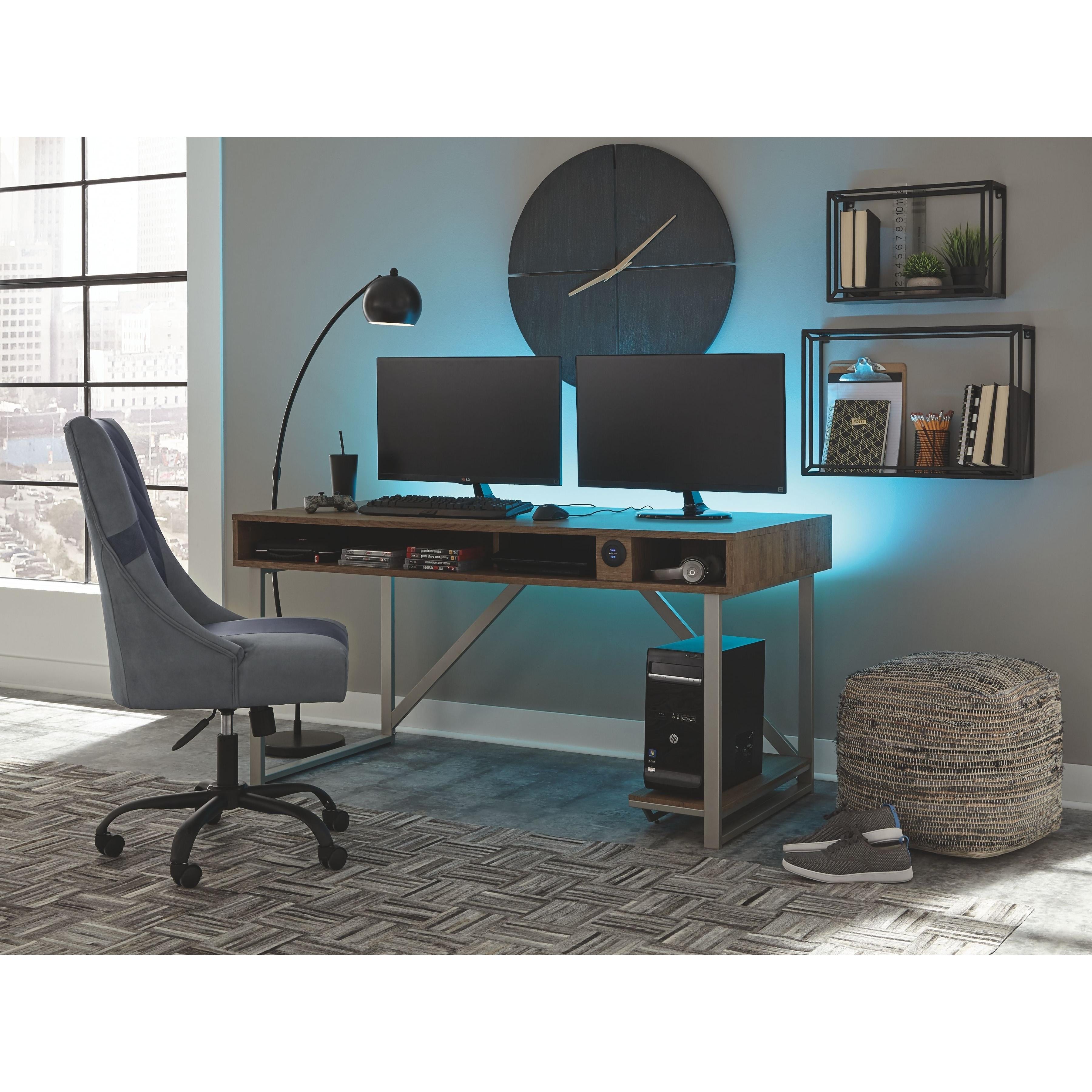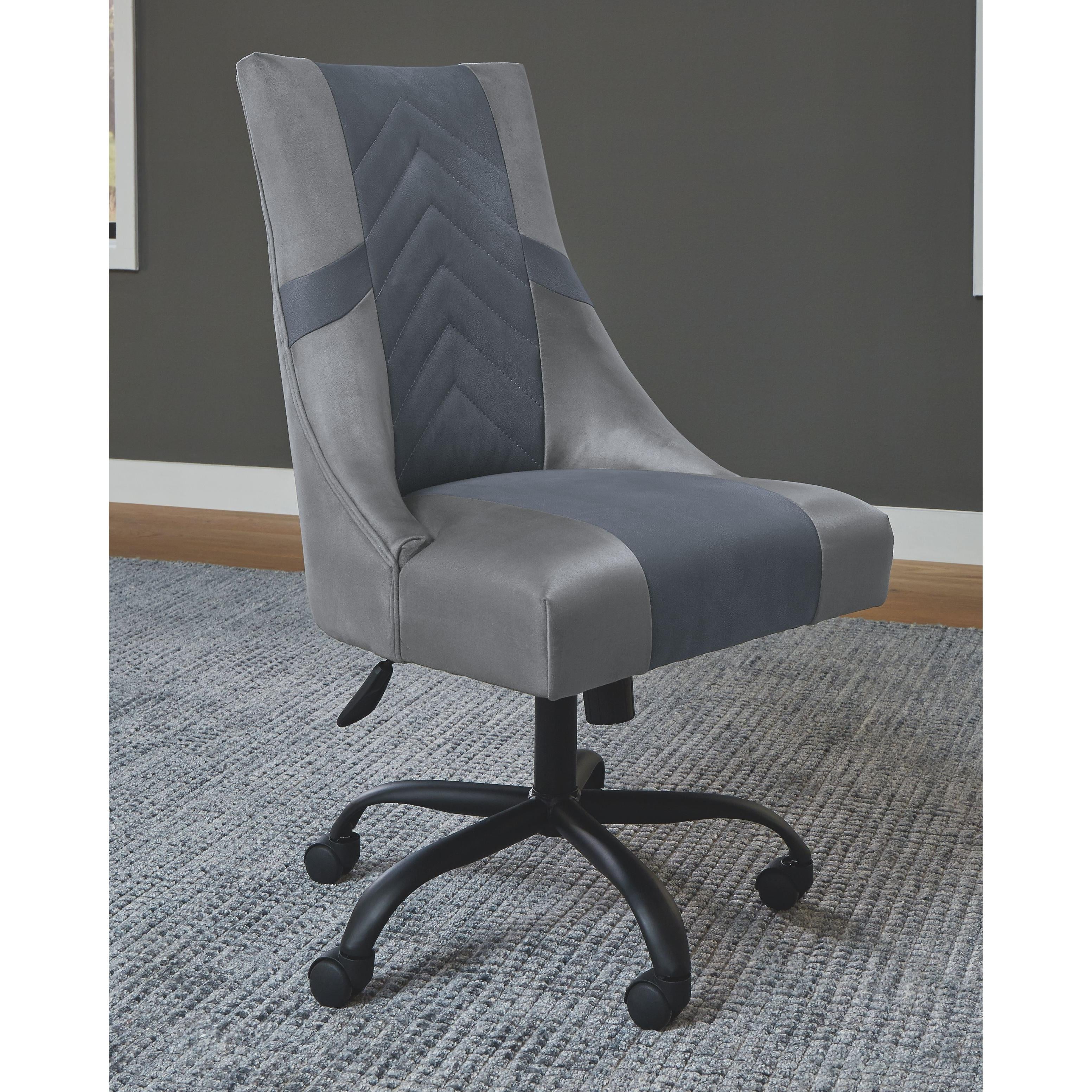 Elevate your style and up your game with this ultra-cool swivel gaming chair. Sporting a high-back design and contoured profile, this comfortably cushioned swivel chair is covered in a two-tone faux leather with a look and feel that's a cut above.