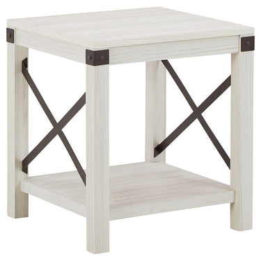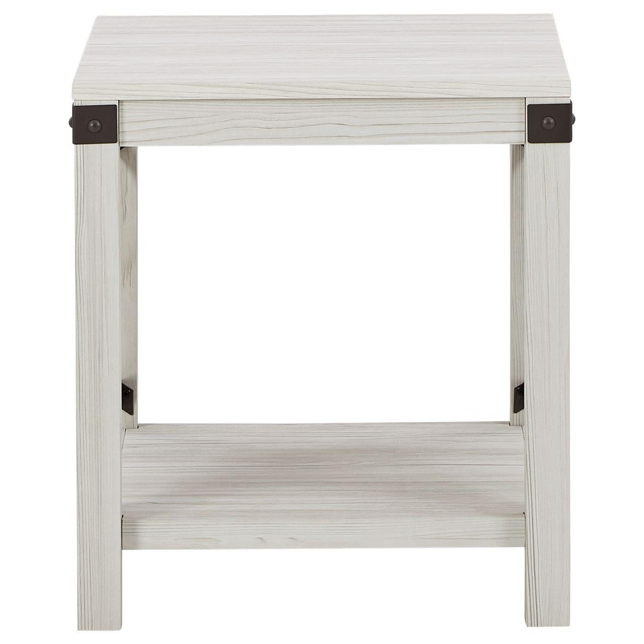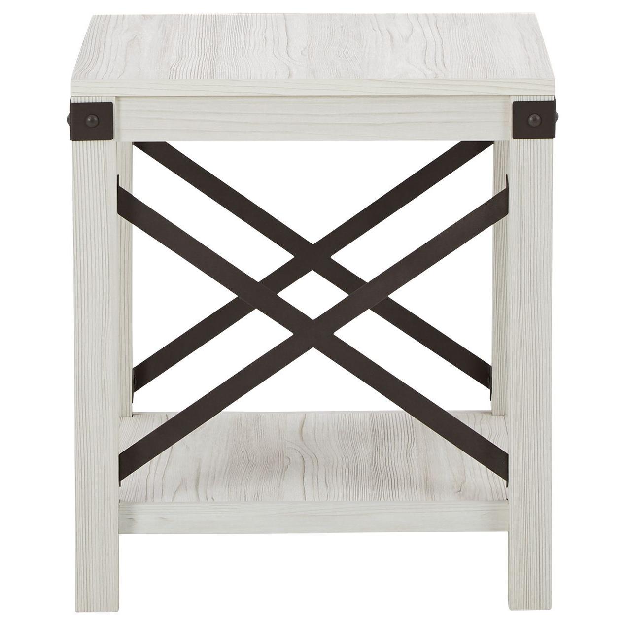 Entertain with ease with this casual, contemporary end table. Designed for the modern tastemaker, the minimalist design wows with crossbuck metal accents and a laminated surface with a whitewashed effect. An open display shelf provides ample space for books and baskets, or for showcasing your special decor accessories.