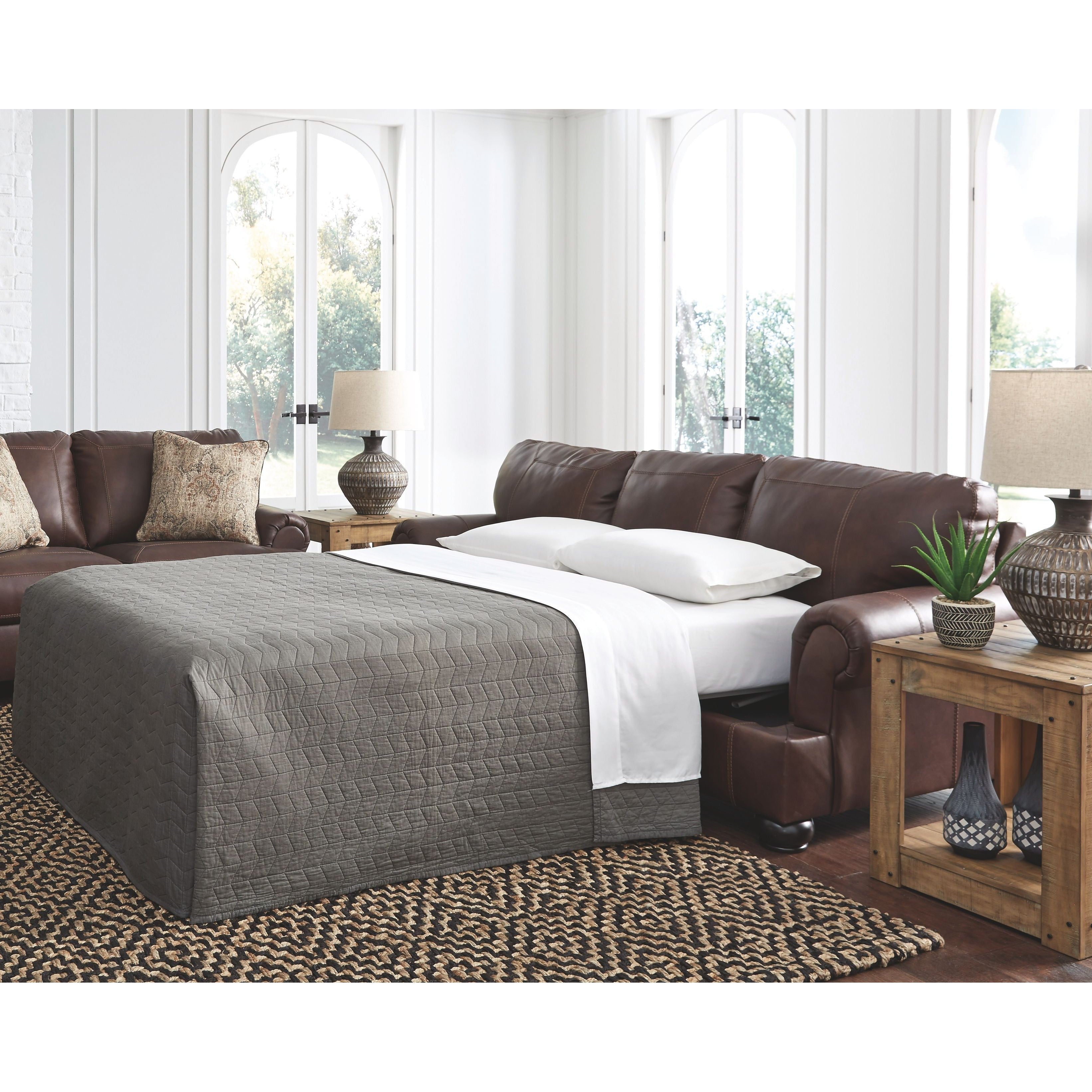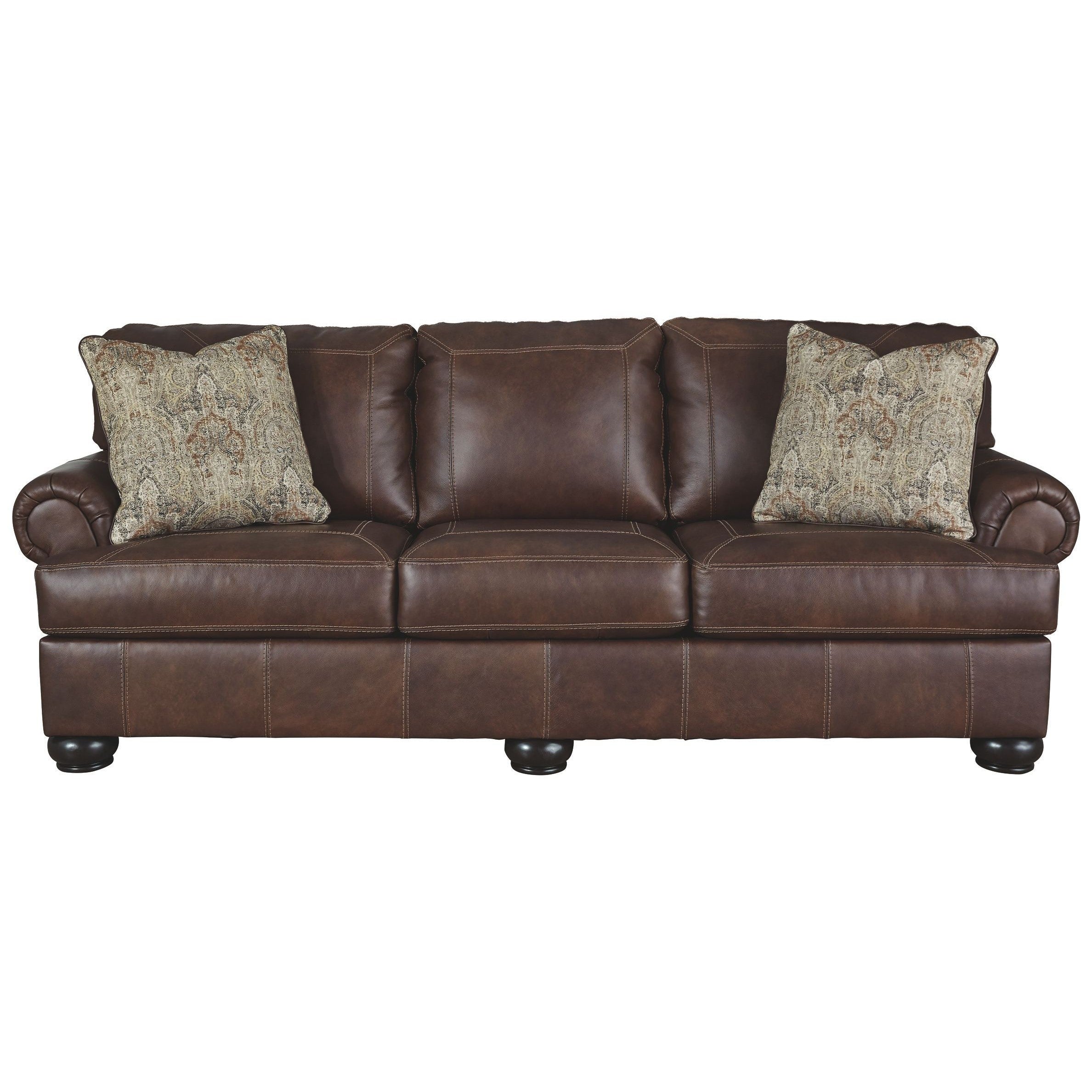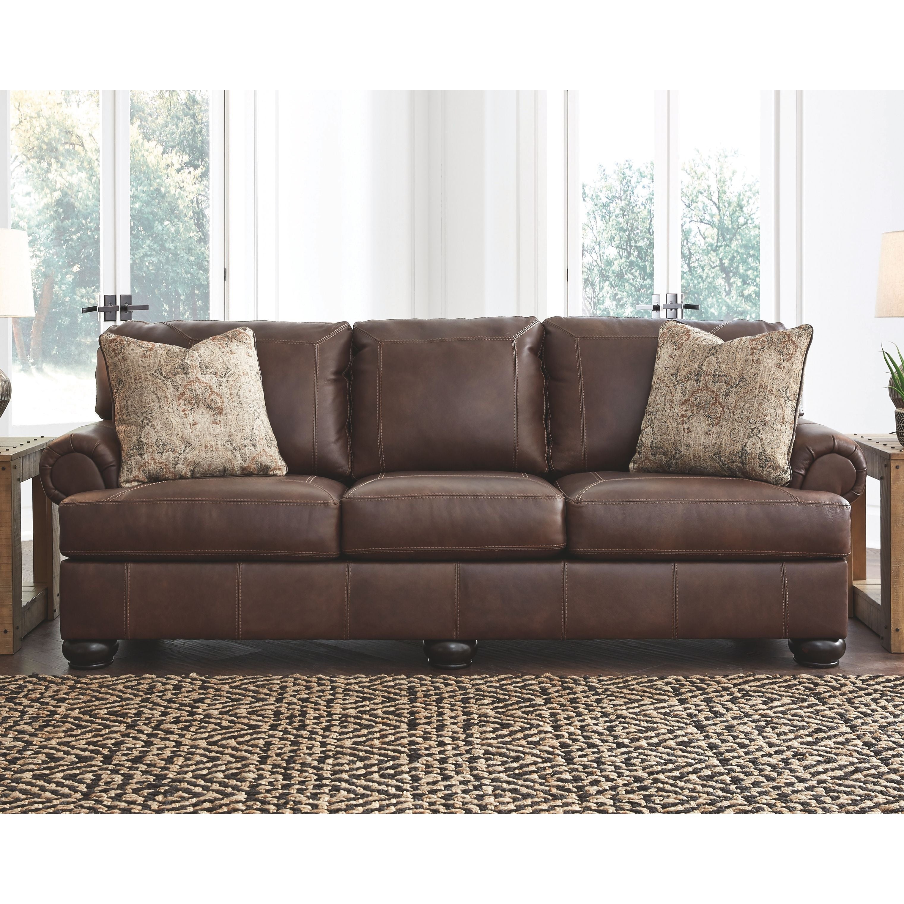 What could be better than the feel of real leather? It's yours for the taking-at a comfortably affordable price-with this sofa sleeper. Rest assured, the seating area and armrests are covered in genuine leather for an incomparable experience. Plush roll arms and distinctive details such as box-stitched cushions and prominent bun feet reflect a sense of richly rustic charm that never goes out of style. Memory foam queen mattress comfortably accommodates overnight guests.