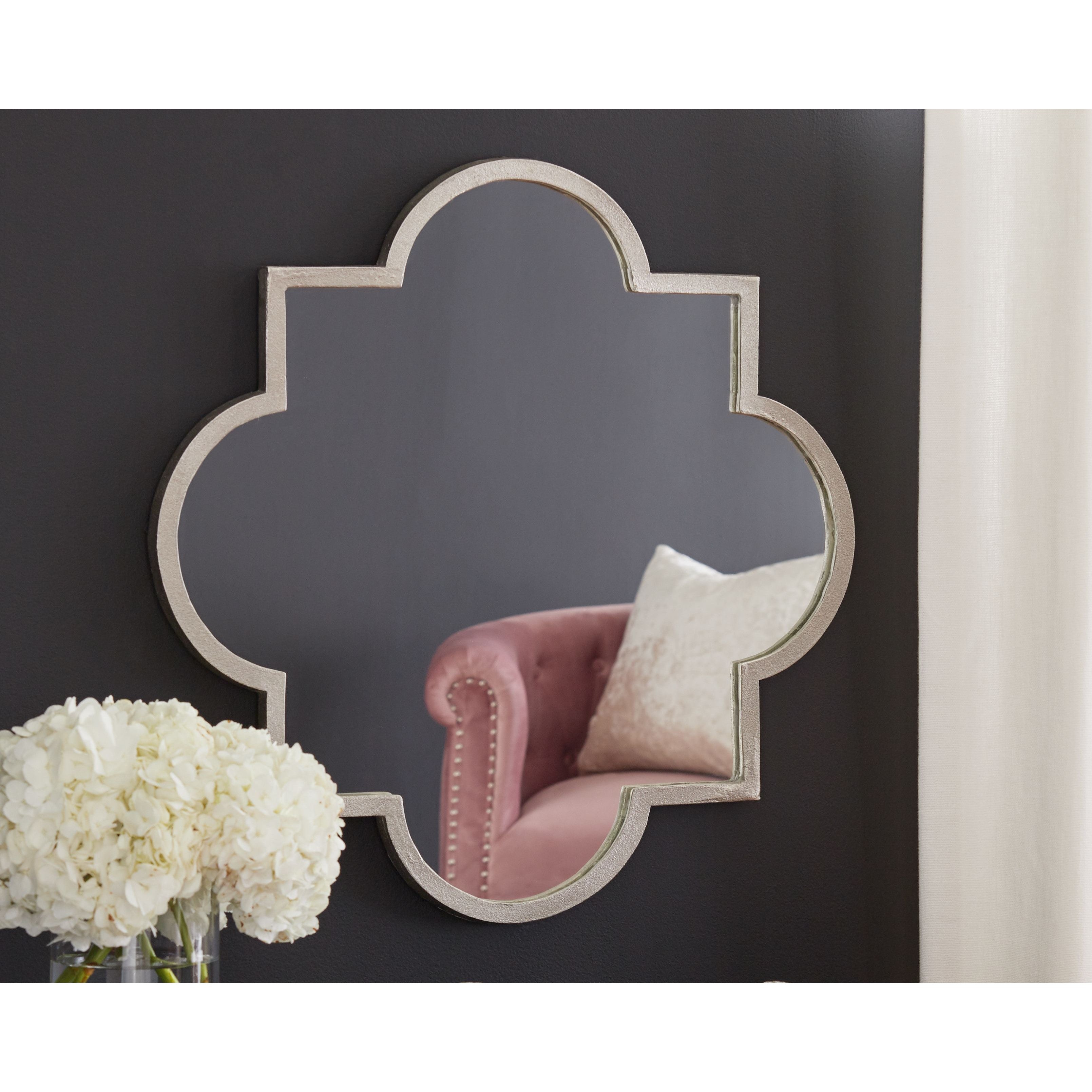 This hanging accent mirror makes it easy to achieve the contemporary style you love. The quatrefoil design adds geometric flair and the silver plated frame makes this eye-catching mirror the perfect addition to any room.