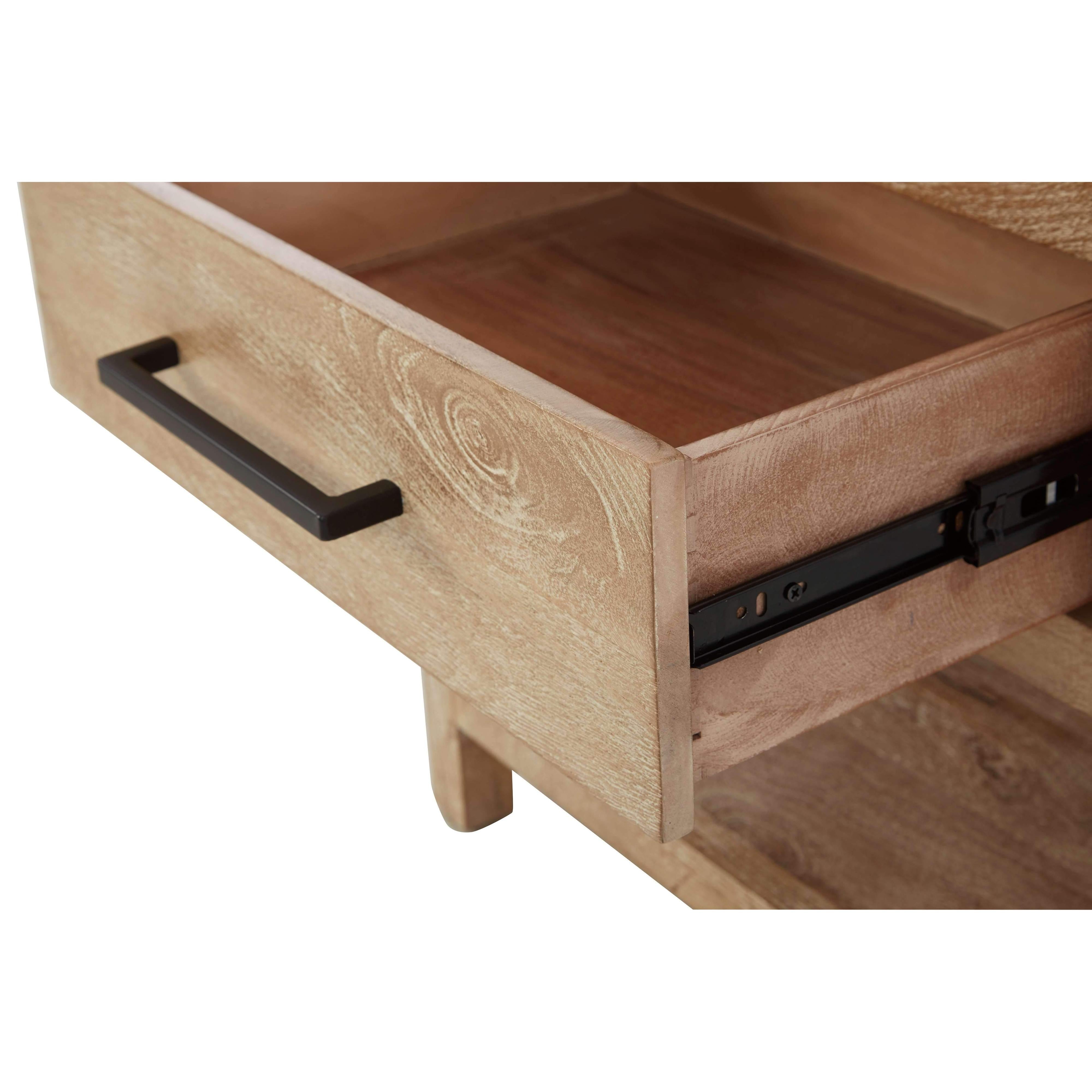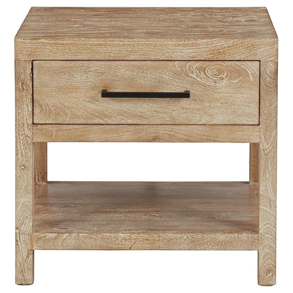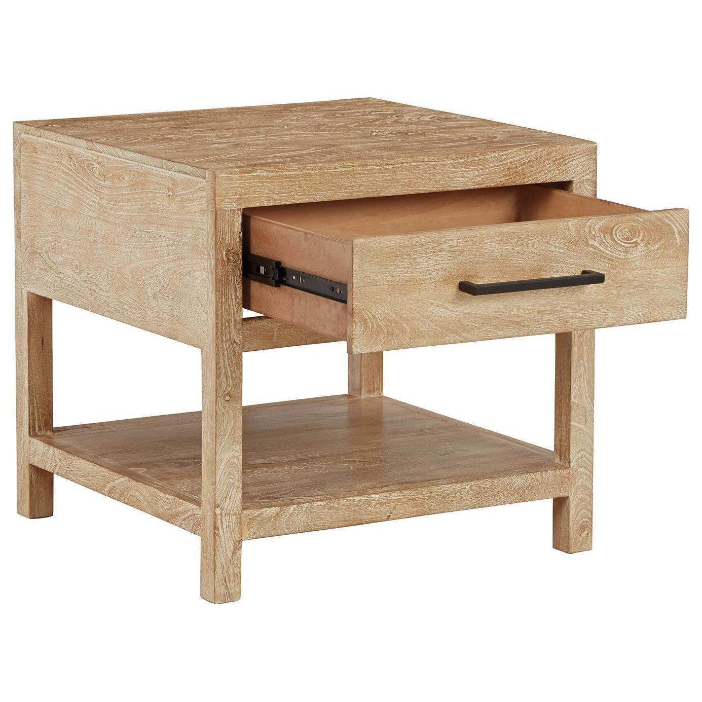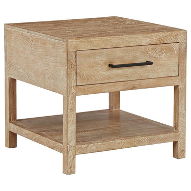 Make life simple in style with this square end table. Its classic geometric construction gets a bit of flair with a hand-applied whitewash finish that accentuates the natural wood grain. If you love a clutter-free tabletop, you'll surely appreciate the smooth-gliding drawer-perfect for remotes, magazines and more. Those with an eye for naturally beautiful design will love this wood table's understated sensibility.