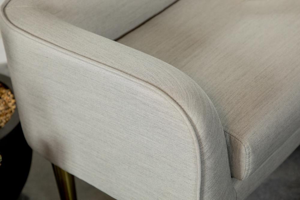 * upholstery in light grey fabric