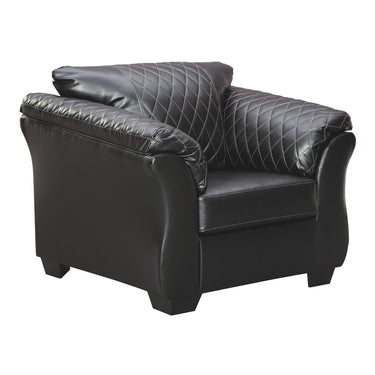 Great design draws inspiration from various places, and this chair is no exception. Diamond-stitched pattern seen in high end handbags and luxury car interiors is simply irresistible when it adorns this sumptuous, generously padded arm chair. Durable easy-care leather alternative delivers the look you crave at a price that's decidedly easy on your purse.