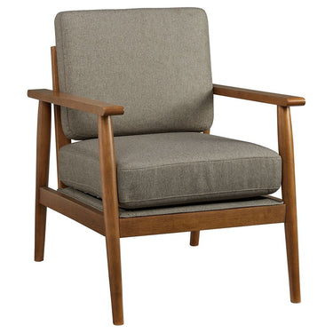 This accent chair offers a perfect blend of style and comfort for your living space. A natural-hued upholstered seat and back complement the design and invite you to sit back and relax.
