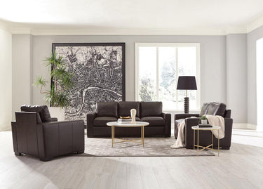 A modern style dark brown armchair is ready to enhance your living space. made from luxuriously soft top grain fabric, you'll instantly feel like curling up with a book. track arms provide additional comfort while vertical stitching enhances its style. down-filled cushions will make this armchair the new favorite seating spot in the house. easily remove the cushions when it's time for cleaning.