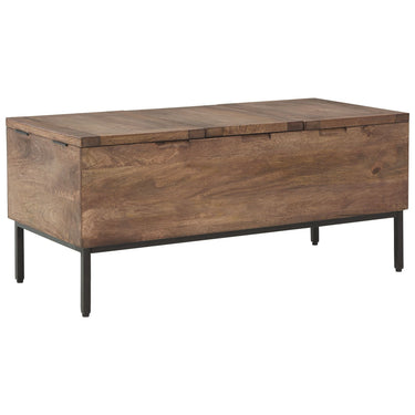 Unlock a quaint touch of casual style and convenience in your living area with this storage trunk. This vintage-inspired trunk is the ideal accent piece for your urban oasis, modern farmhouse or contemporary cottage. Metal legs and 3 storage compartments with hinged tops add style and functionality to keep your space organized and clutter free.