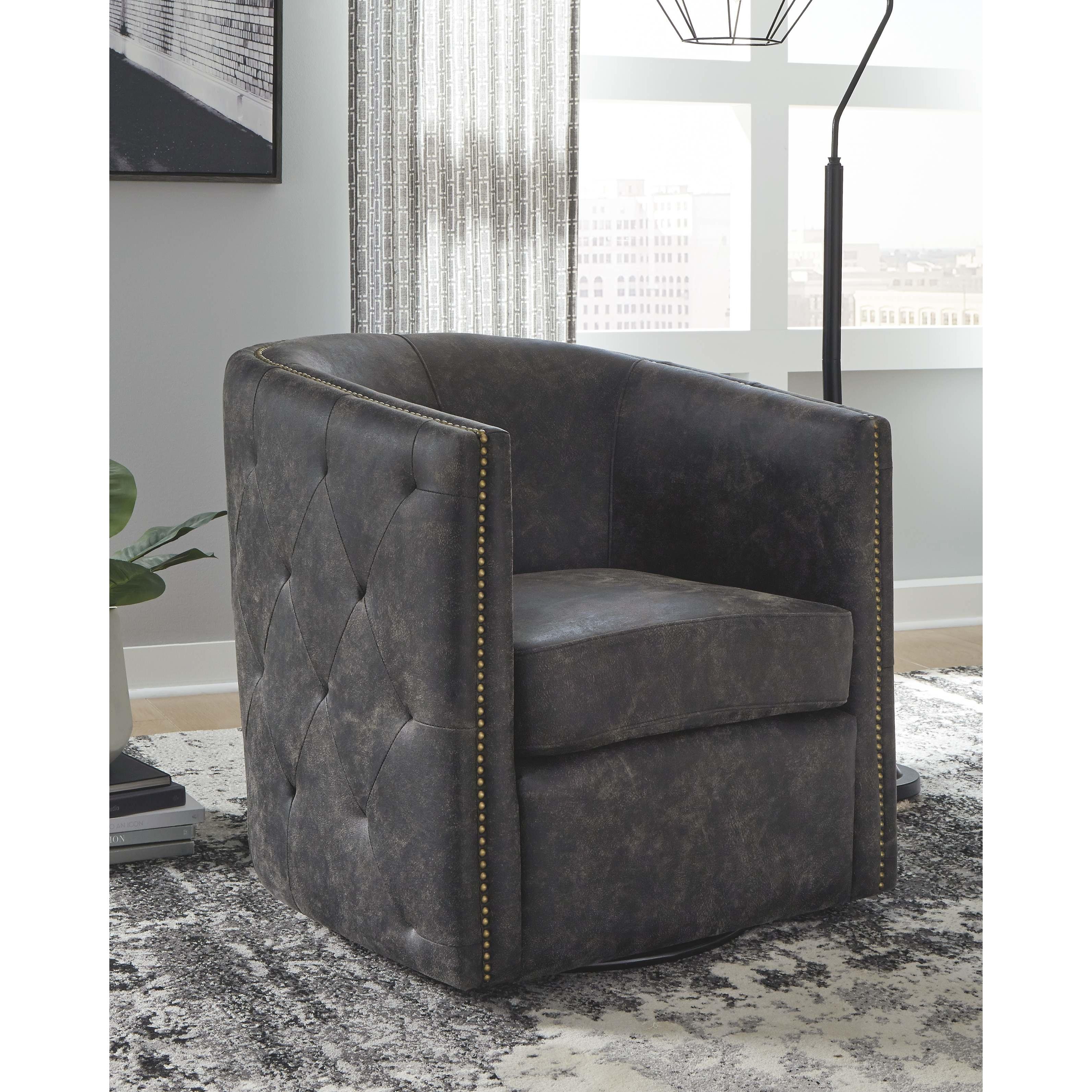 Ashley Brentlow Swivel Chair in Distressed Black-Washburn's Home Furnishings