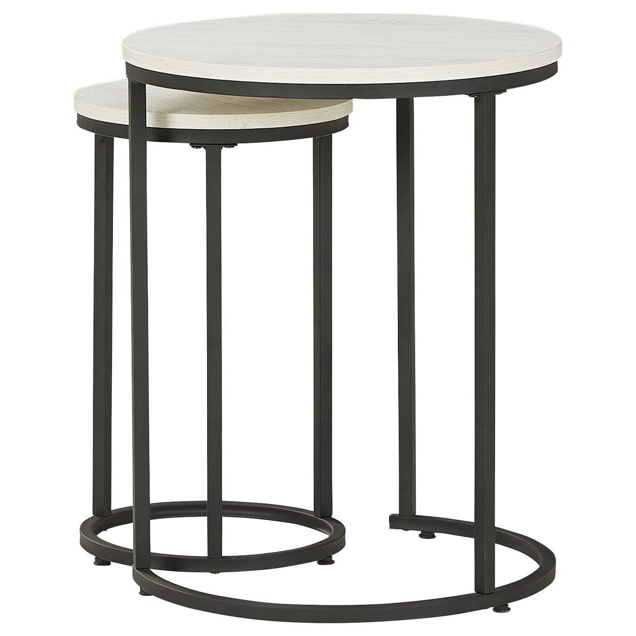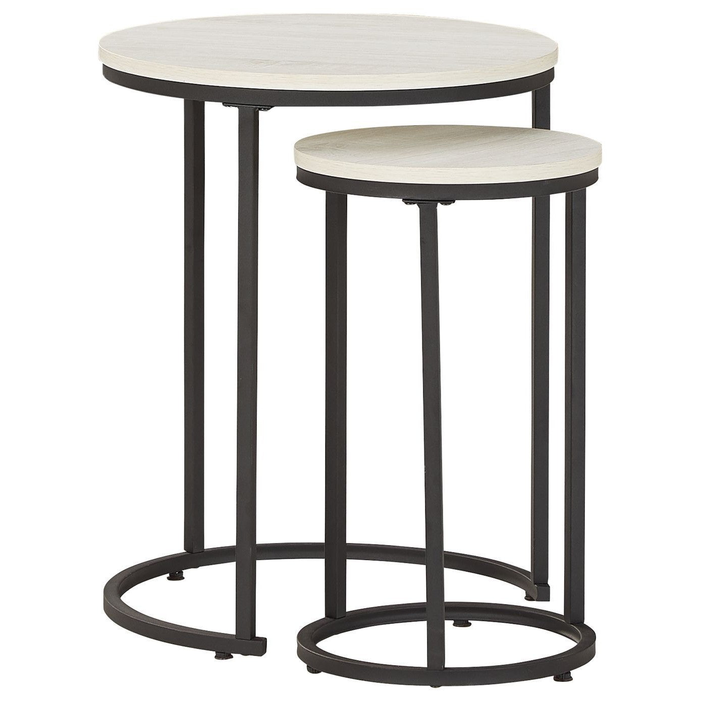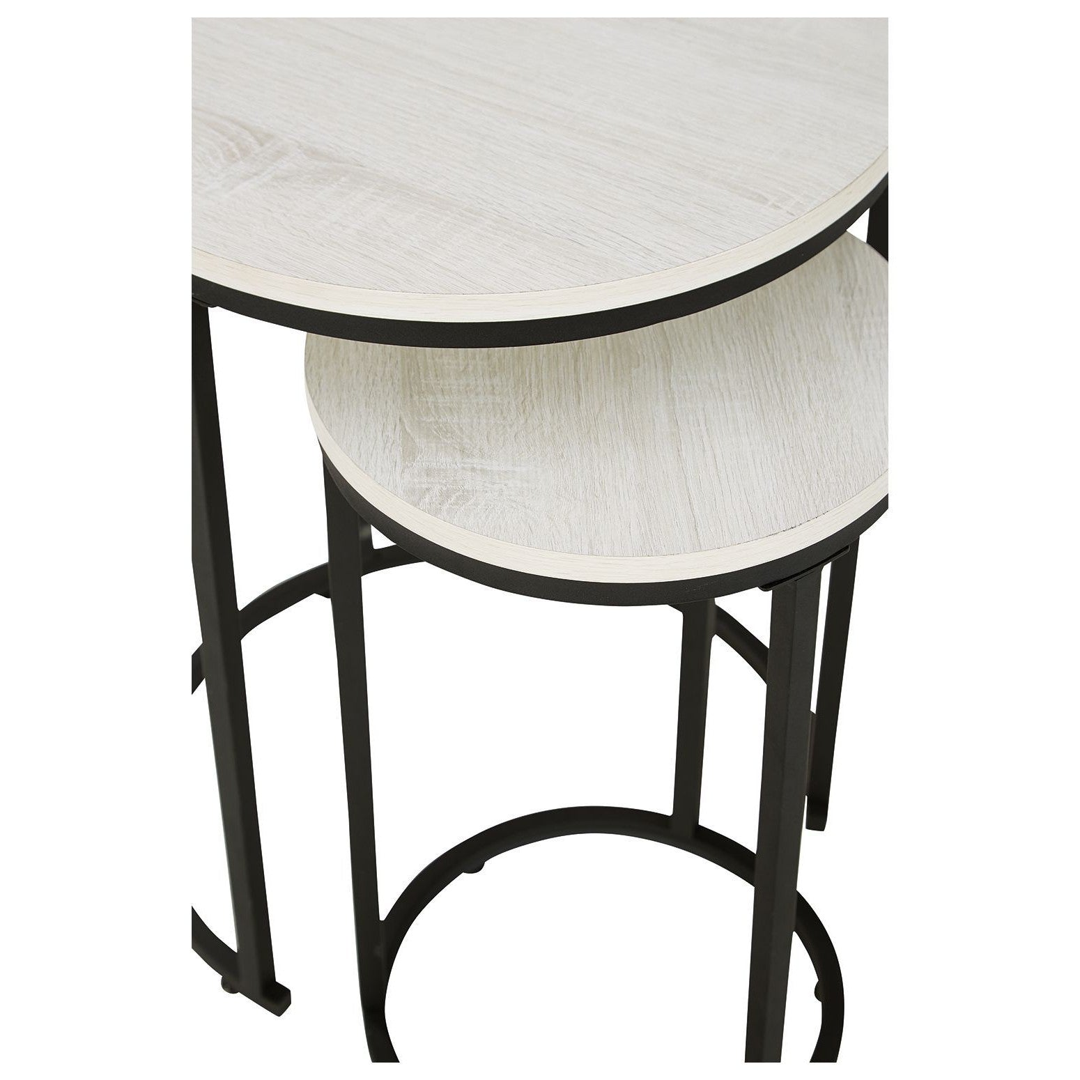 Round out your home with these circular top accent tables. In a nesting set of 2, the white finished tables add casual flair. Black finished metal keeps things sleek. With space for lamps, photos and other accessories, the possibilities for this set of accent tables are endless.