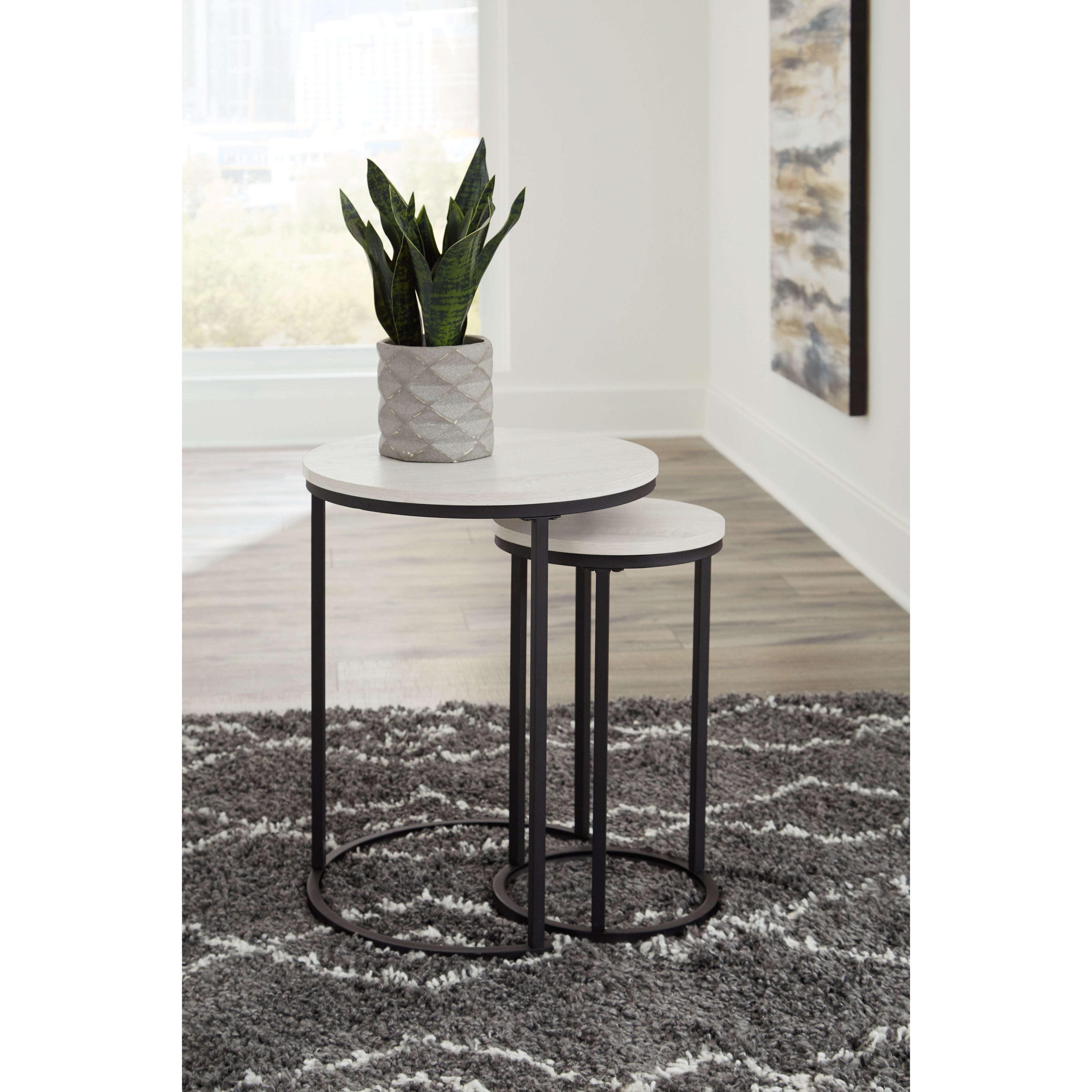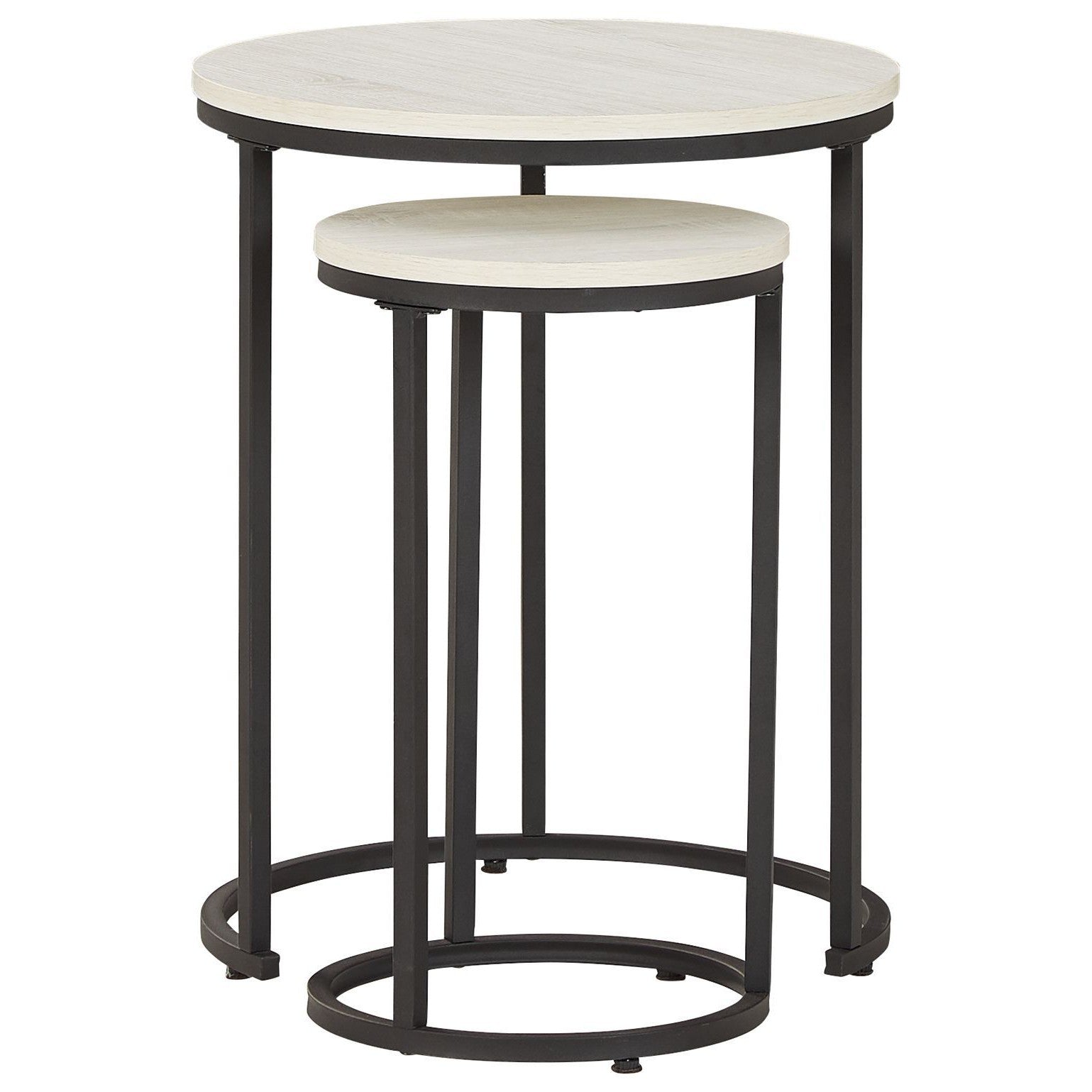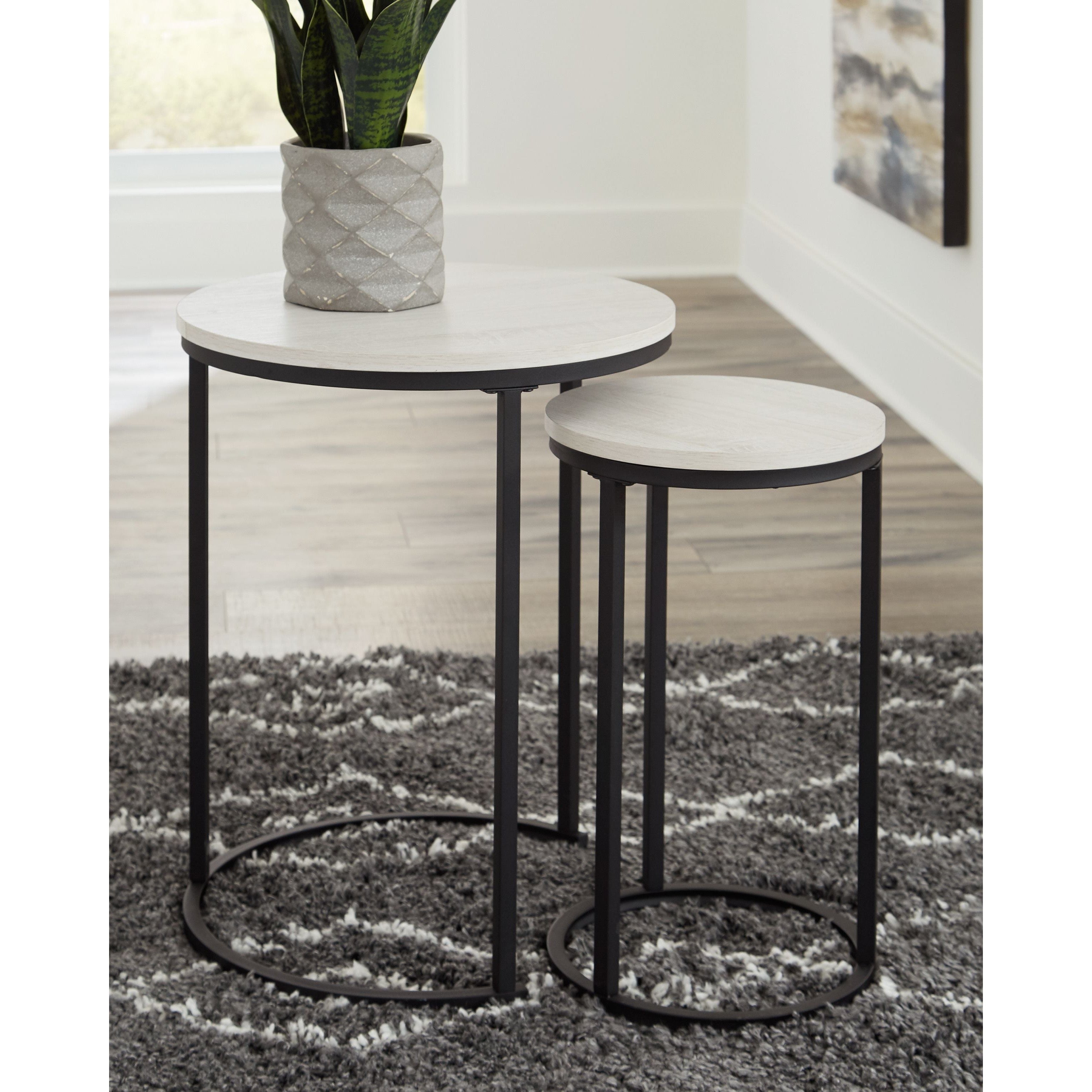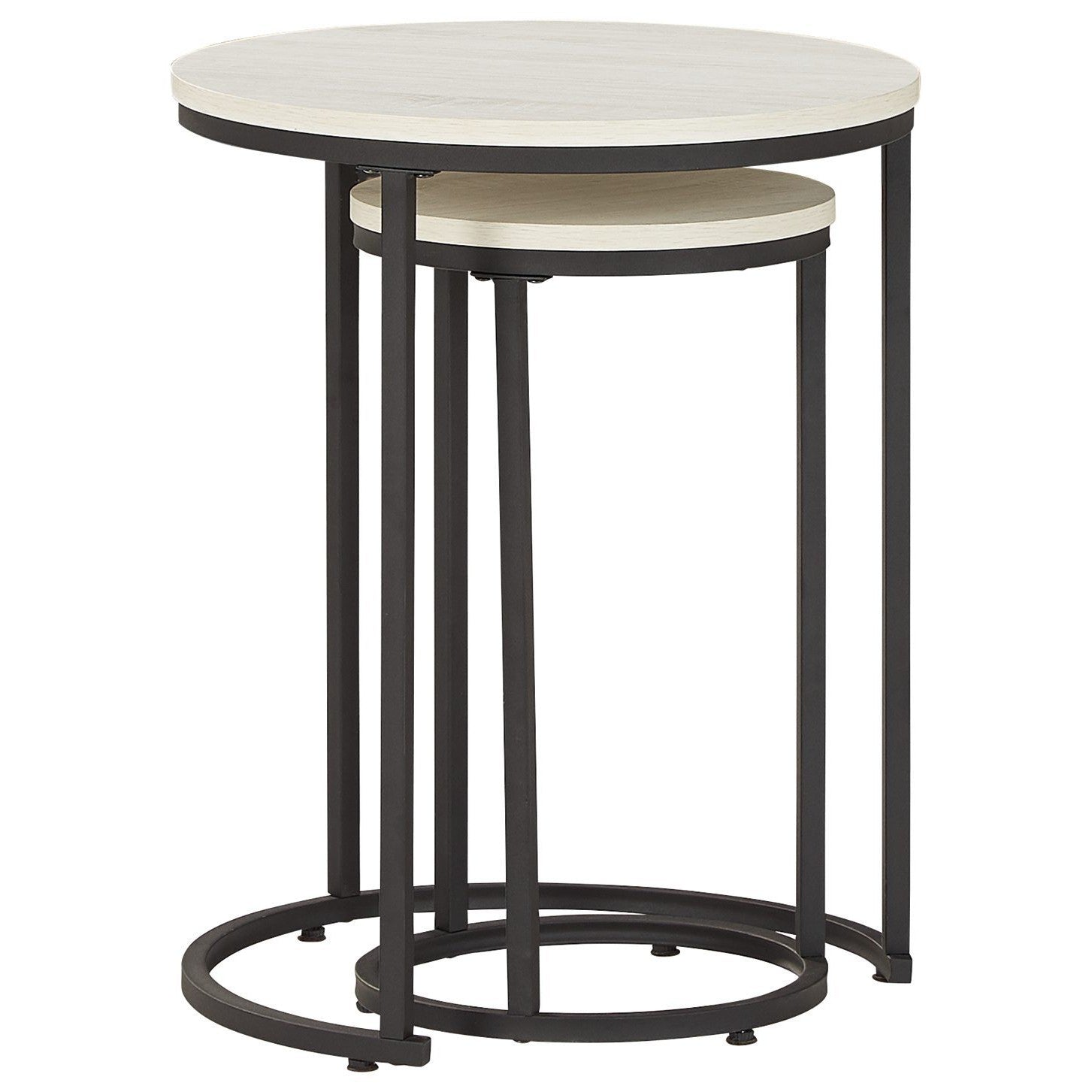Round out your home with these circular top accent tables. In a nesting set of 2, the white finished tables add casual flair. Black finished metal keeps things sleek. With space for lamps, photos and other accessories, the possibilities for this set of accent tables are endless.
