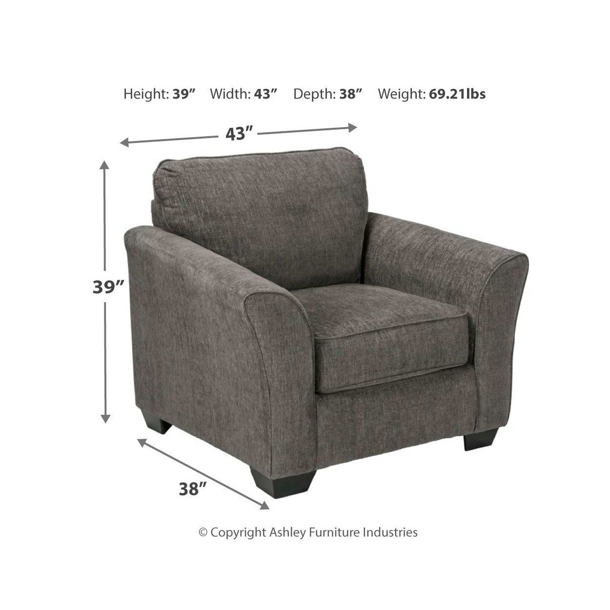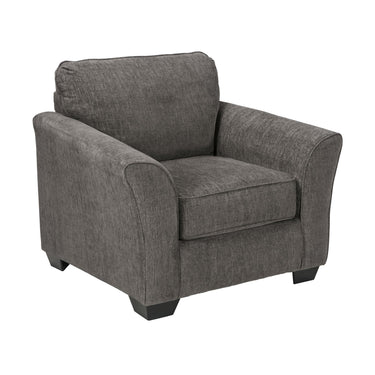 Slate colored menswear chenille makes this chair a show stopping sight and comfortable resting place. Flared arms soften the look and invite you to take a seat. Plush and roomy, this is the perfect neutral chair.