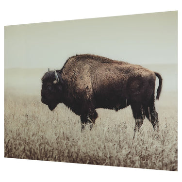 Add a touch of rustic refinement to your decor with this unique sepia wall art. Glass reproduction of a lone bison calls to mind tintype photos of the Old West, making for a retro look loaded with charm.
