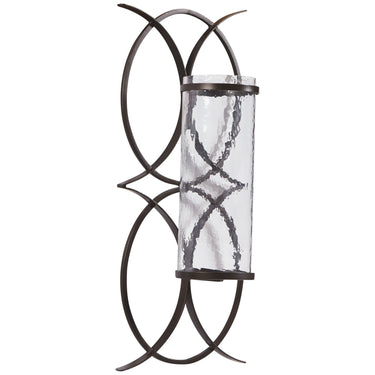 Light up your space with the graphic style of this wall sconce. The black finish of the geometric design adds a classic touch to this very modern piece. Place your own candle in the clear glass and enjoy your very chic space.