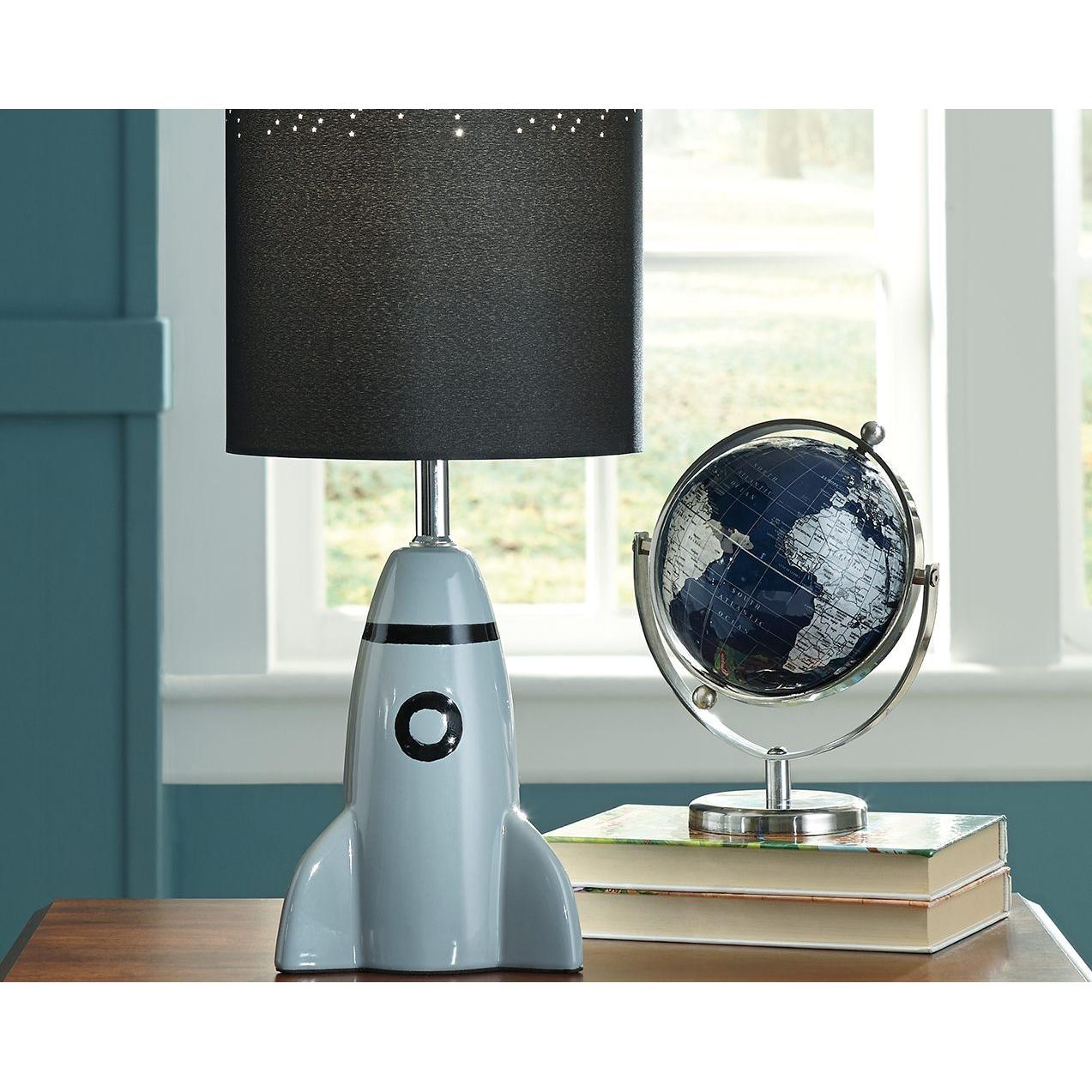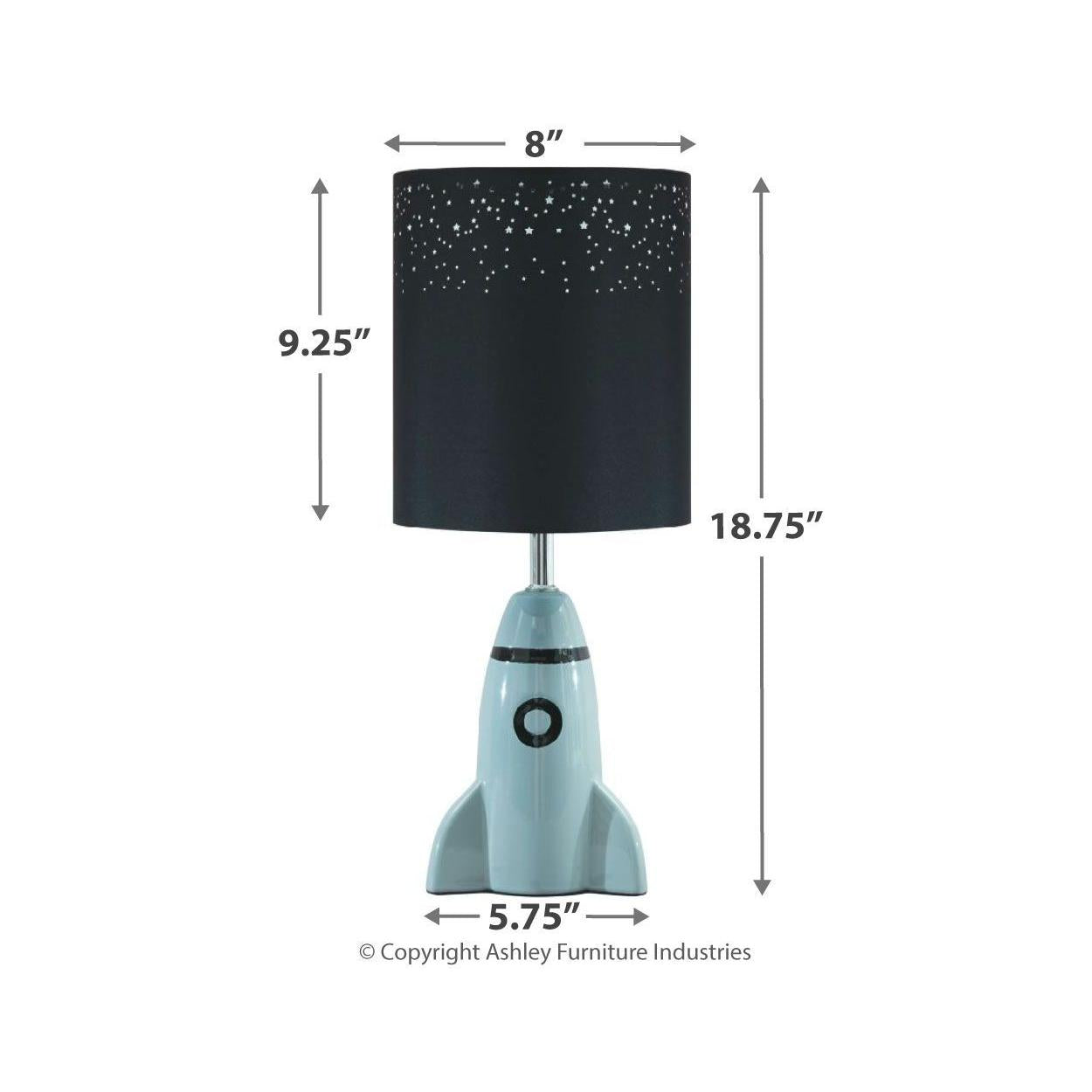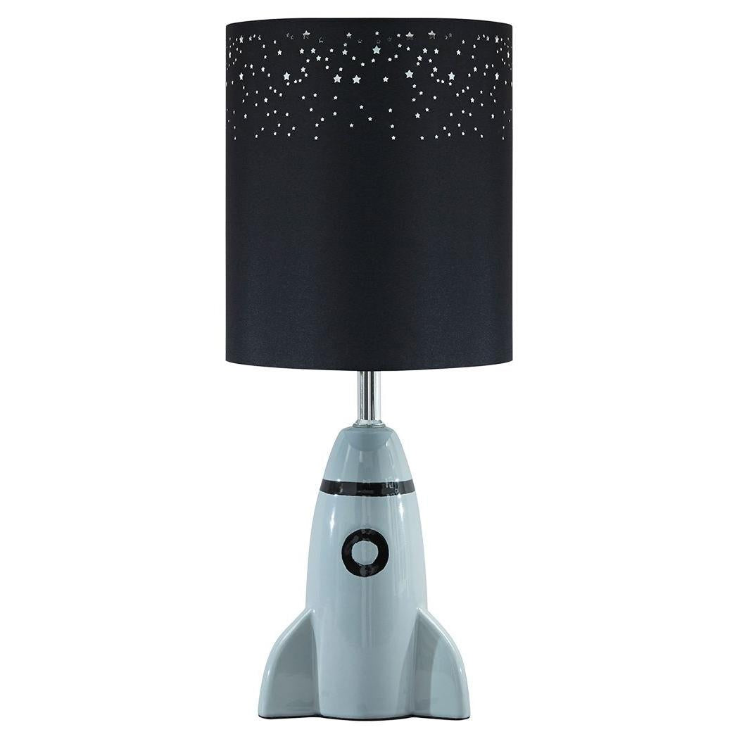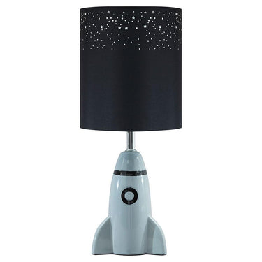 Have a blast decorating your kid's room with help from this rocket-themed bedside lamp. With details like star-shaped cutouts adorning the cylindrical drum shade, what a stellar choice.