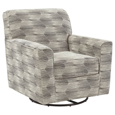 Whether you're designing a cool and contemporary space or creating a warm and cozy modern farmhouse vibe, you can't deny: this swivel glider accent chair is a turn for the better. Daring to be different, this designer swivel chair wows with a fashion-forward abstract upholstery for modern sophistication. With a 360-degree swivel and gentle rocking motion, it beautifully goes with the flow.
