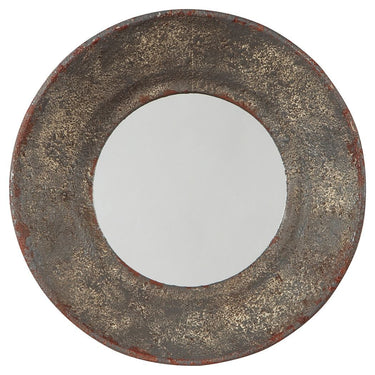 Lust for rust. If you're all over distressed decor, you're sure to find this round accent mirror a beautifully reflects your fine taste. Simply striking, the round tapered metal frame looks all the better for the wear.