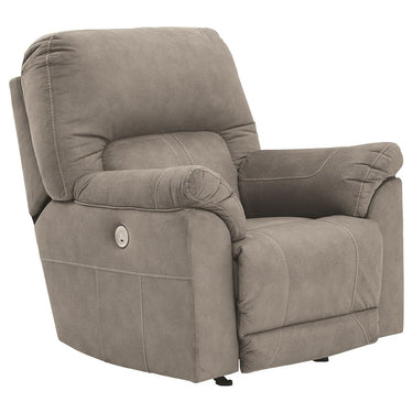 Strike a balance between the indulgent comfort you crave and the cool aesthetic you long for with this power rocker recliner. Offering the cool look of weathered leather, the feel-good slate-tone upholstery takes neutral to new heights. Simply chic divided back tailoring, jumbo stitching and a USB port in the one-touch power control are among the finer details that make all the difference.