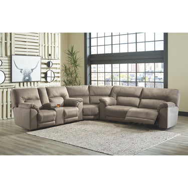 Strike a balance between the indulgent comfort you crave and the cool aesthetic you long for with this reclining sectional. Offering the cool look of weathered leather, the feel-good slate-tone upholstery takes neutral to new heights. Simply chic divided back tailoring and jumbo stitching are among the finer details that make all the difference.